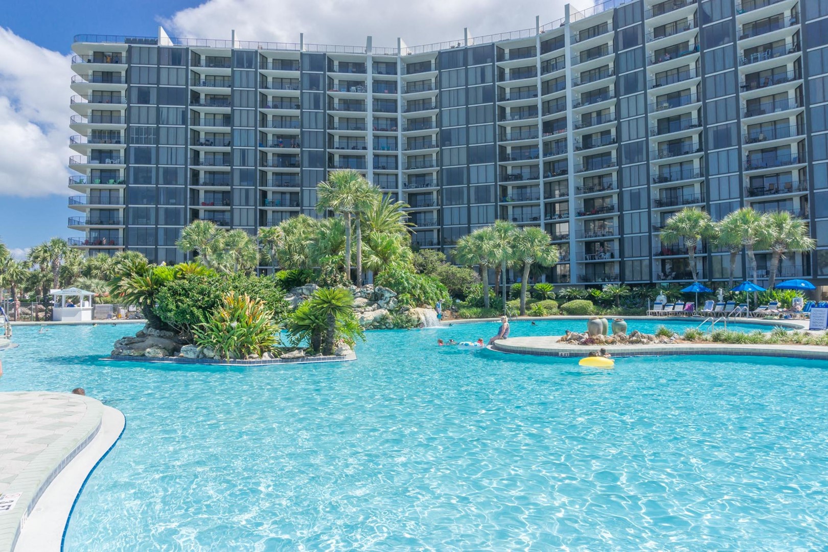 Edgewater Beach & Golf Resort is one of the best family friendly resorts in Panama City Beach, Florida. Exclusive amenities include 11,800 sq. ft. lagoon pool with waterfalls & tropical landscaping, 9 heated pools, 4 hot tubs, pool side activities & live music, Paradise Pizza, Ocean's full service restaurant & bar, Eddie's/Starbucks Coffee Shop/Ice Cream Parlor, Spa, Fitness Center, Hair Salon, Pro Shop, Executive 9 hold Golf Course, 11 lighted Tennis Courts, Pickleball Court, Basketball Court, & Shuffleboard. Let the fun begin!