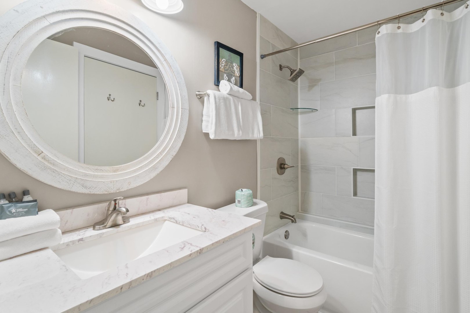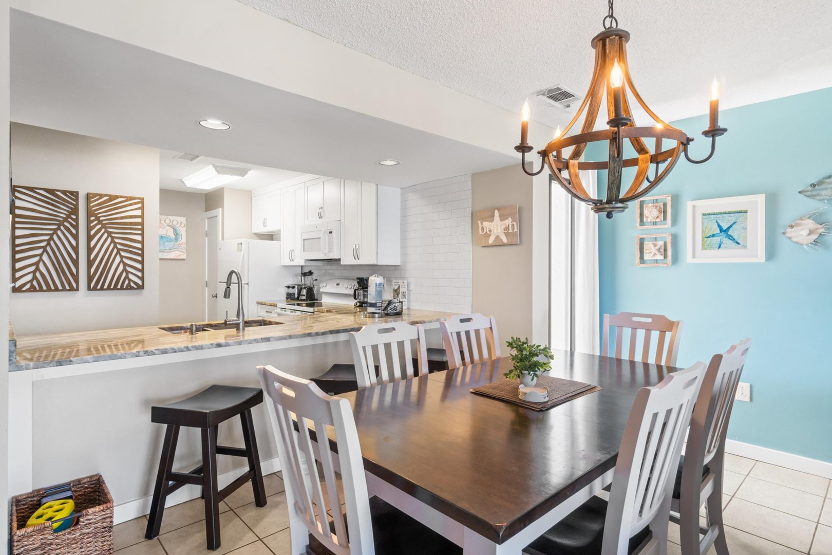Panhandle Getaways furnishes a few essential items for guests to utilize until they can get to the grocery store. Initial Supplies include: Dishwasher soap, small washing machine powder, each bathroom has amenities (like hotel but NOT restocked) shampoo, conditioner, soap bar. One roll of toilet paper in each bathroom & one paper towel roll in the kitchen. All bed linens & towels are provided. We encourage guests to bring beach towels for use at the pool and beach.