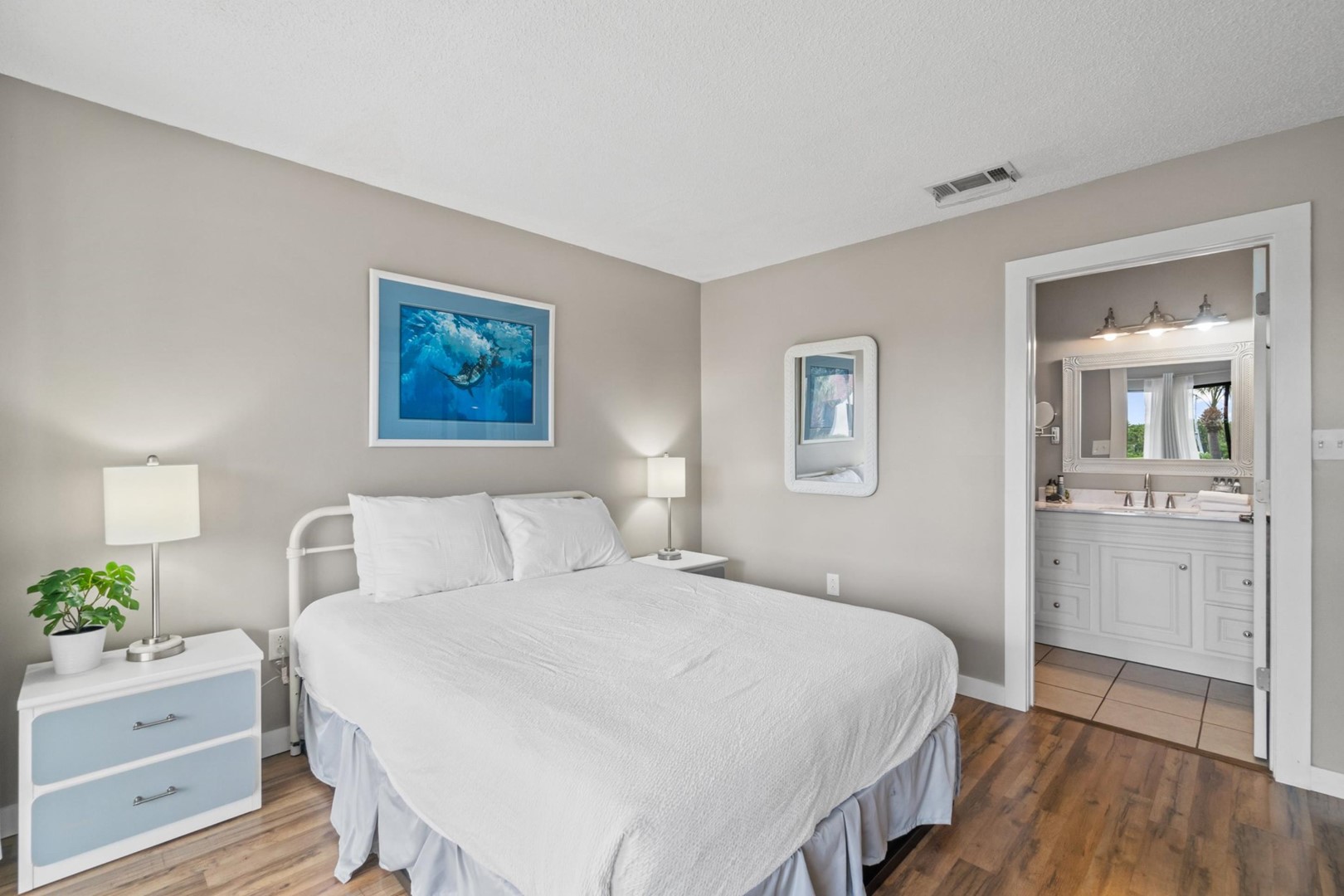 * Bedroom 1 - California King Bed, 30" TV, En Suite Bathroom