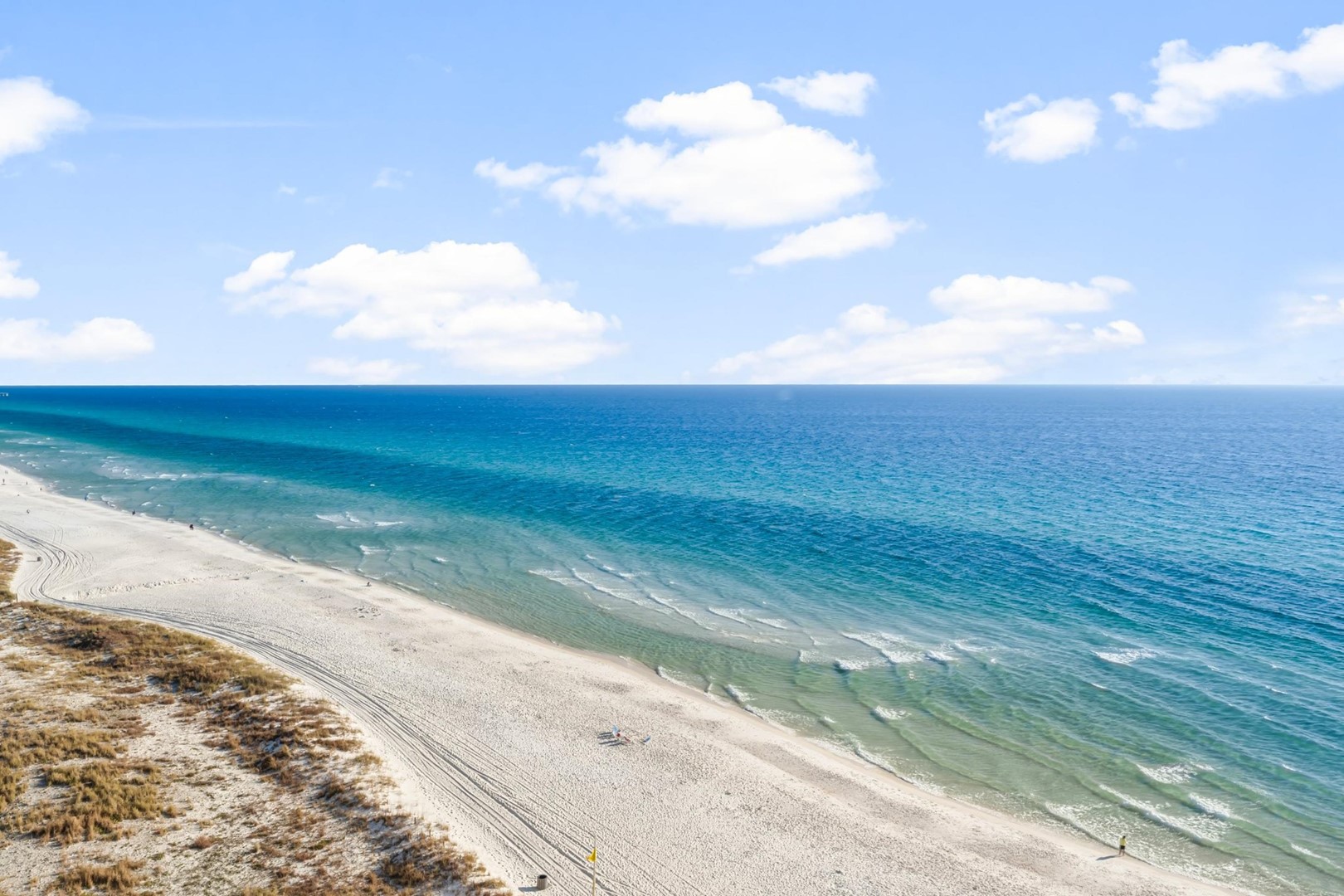 Panhandle Getaways furnishes a few essential items for guests to utilize until they can get to the grocery store. Initial Supplies include: Dishwasher soap, small washing machine powder, each bathroom has amenities (like hotel but NOT restocked) shampoo, conditioner, soap bar. One roll of toilet paper in each bathroom and one paper towel roll in the kitchen. All bed linens and towels are provided. We encourage guests to bring beach towels for use at the pool and beach.