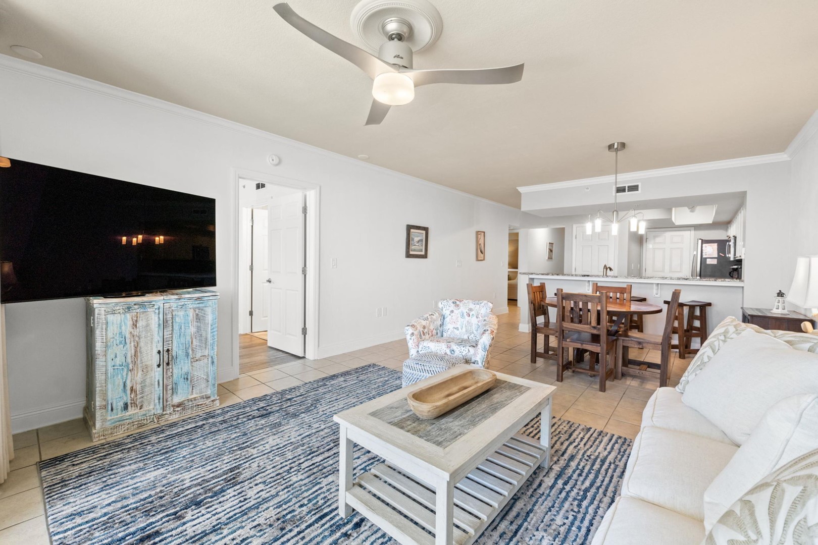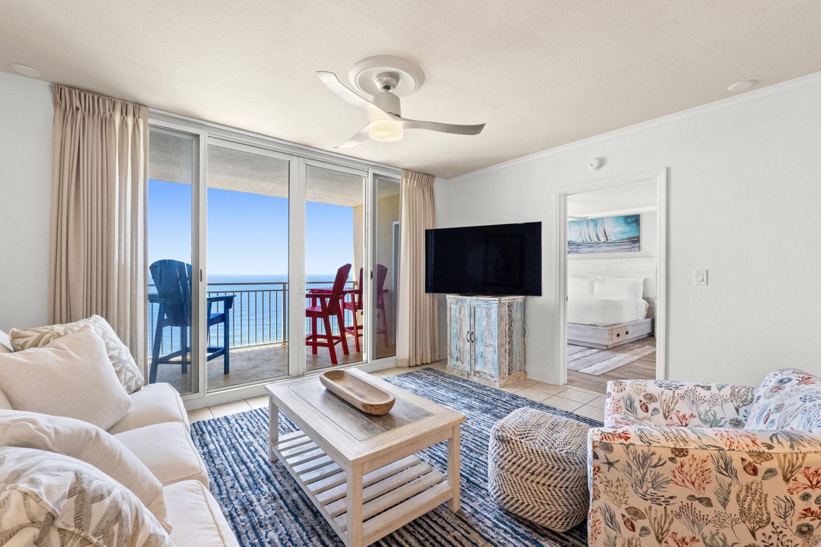 * Living Area with Gulf View and Smart TV