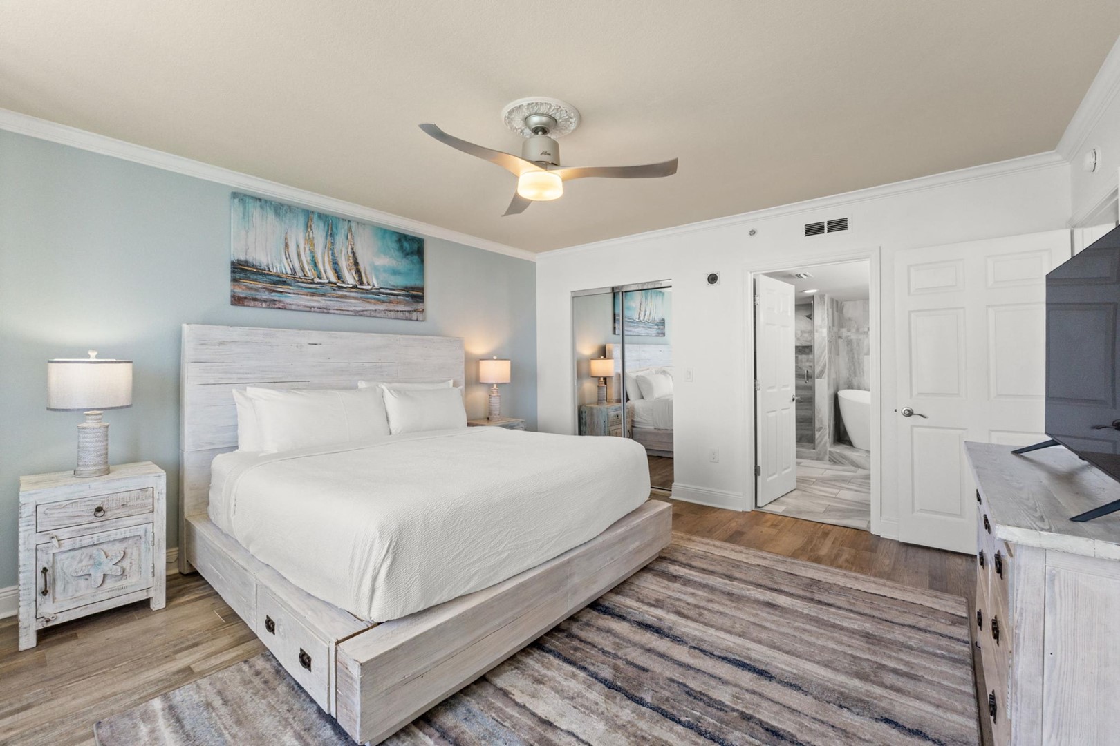 * Bedroom 1 - Gulf View, King Bed and Smart TV, En Suite Bathroom