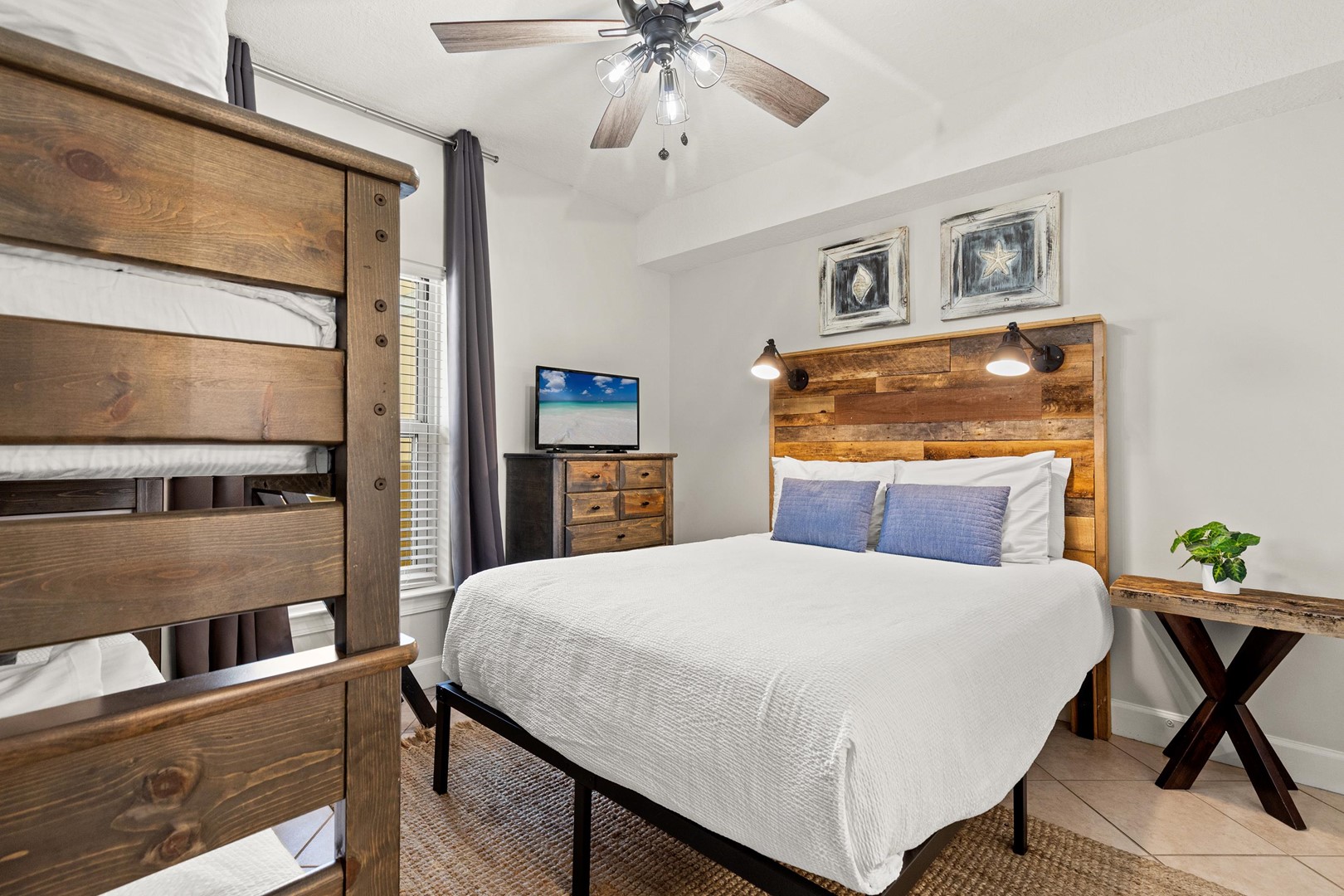 * Bedroom 2 - Queen Bed, Bunk (T/T), TV, En Suite Bathroom