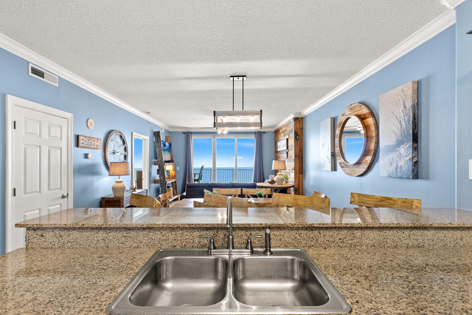 The view from the balcony was amazing. I did stress a bit having 2 small children and worrying about them accidently dropping things over. The kitchen had everything we needed. The decor was nice and beachy and had enough seating for all of us. It would have been nice to have a smart TV so that we could watch Disney+ and Netflix. Nice to have laundry right there! Thanks for a great stay!Brett W. - Posted: 12/6/2023