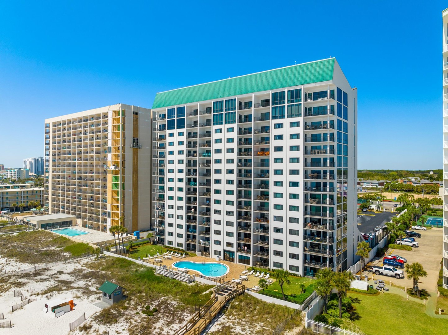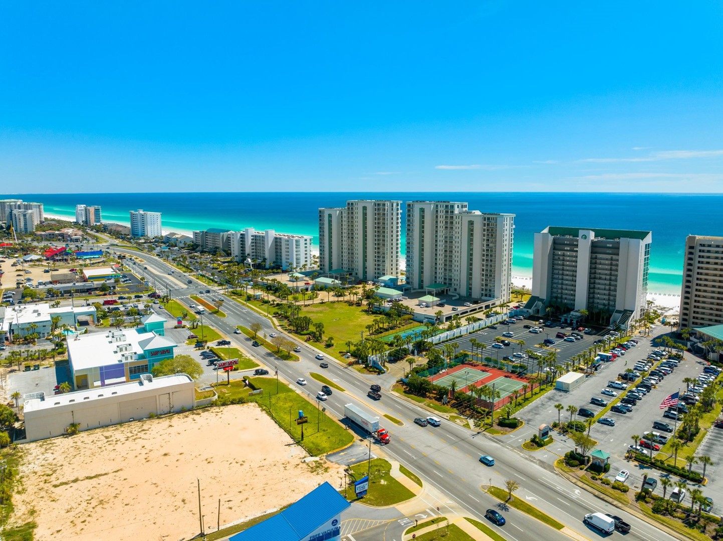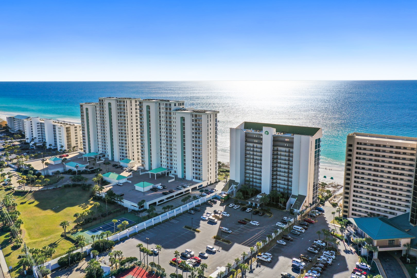 Emerald Towers is within easy walking distance of shops, restaurants, and theme parks. Golf courses, the Destin Harbor, and many other Destin activities are a short drive away. The jet set can come by private aircraft to Emerald Towers, as the Destin Airport is just 2 miles away. Come and see why families return to Emerald Towers Beach Resort year after year!