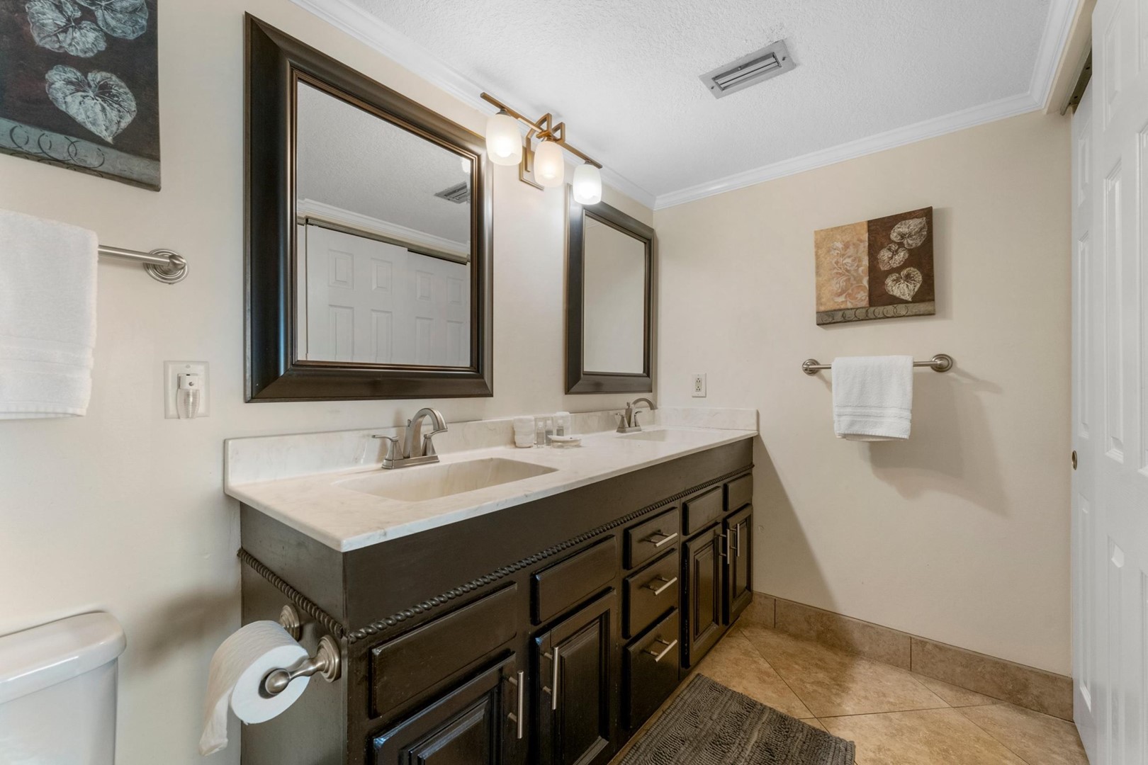 Panhandle Getaways furnishes a few essential items for guests to utilize until they can get to the grocery store. Initial Supplies include: Dishwasher soap, small washing machine powder, each bathroom has amenities (like hotel but NOT restocked) shampoo, conditioner, soap bar. One roll of toilet paper in each bathroom and one paper towel roll in the kitchen. All bed linens and towels are provided. We encourage guests to bring beach towels for use at the pool and beach.