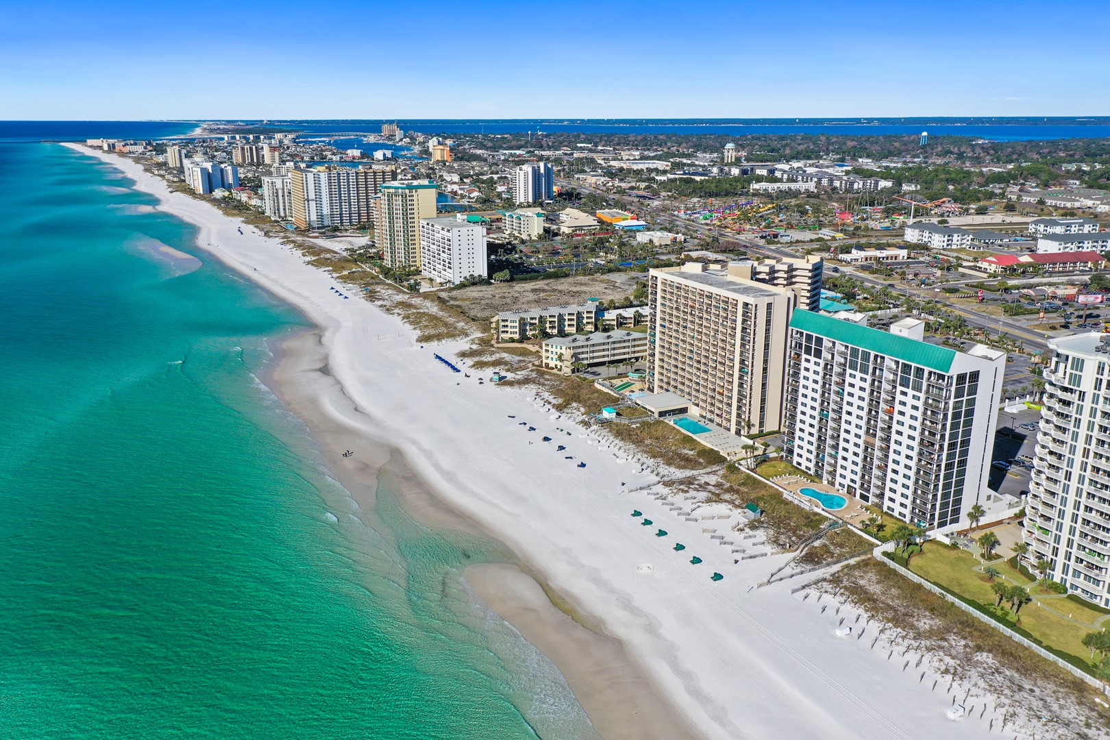 Emerald Towers is within easy walking distance of shops, restaurants, and theme parks. Golf courses, the Destin Harbor, and many other Destin activities are a short drive away. The jet set can come by private aircraft to Emerald Towers, as the Destin Airport is just 2 miles away. Come and see why families return to Emerald Towers Beach Resort year after year!