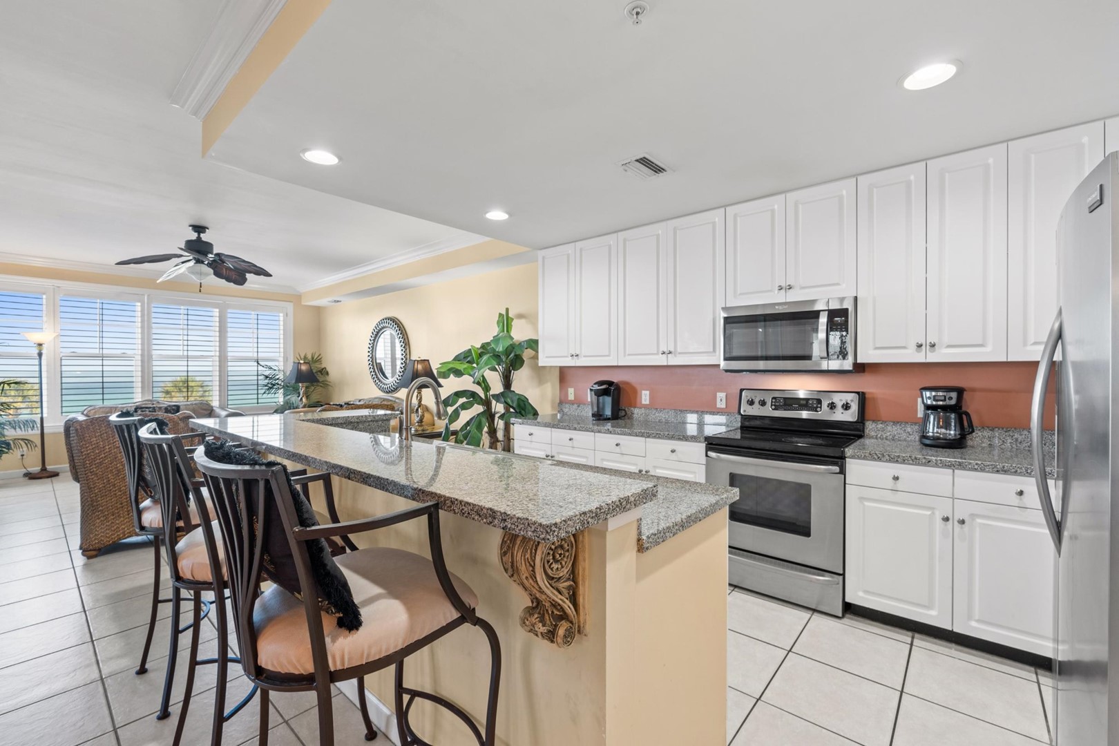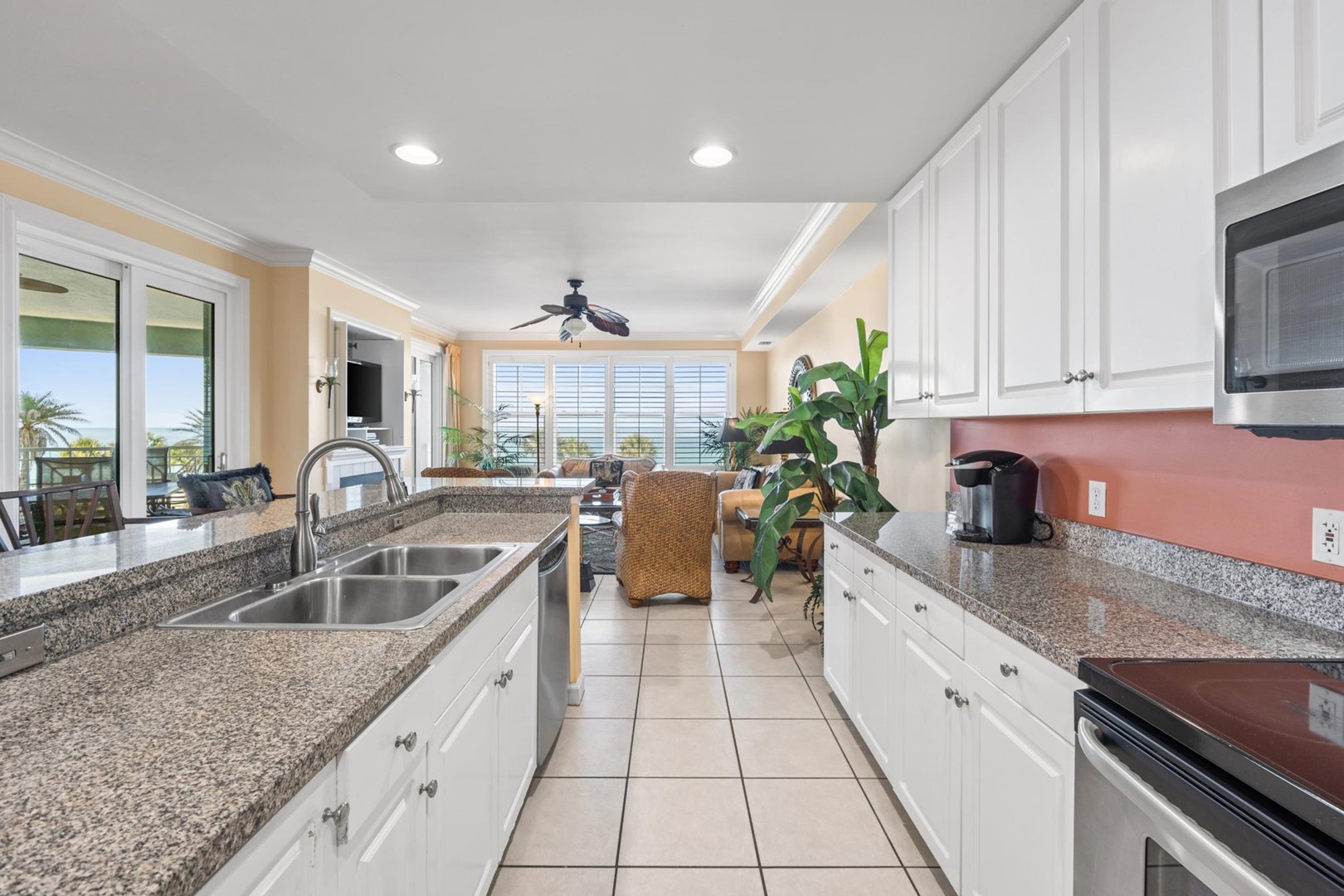 * Living Area - Gulf View, 48" TV, Balcony Access
