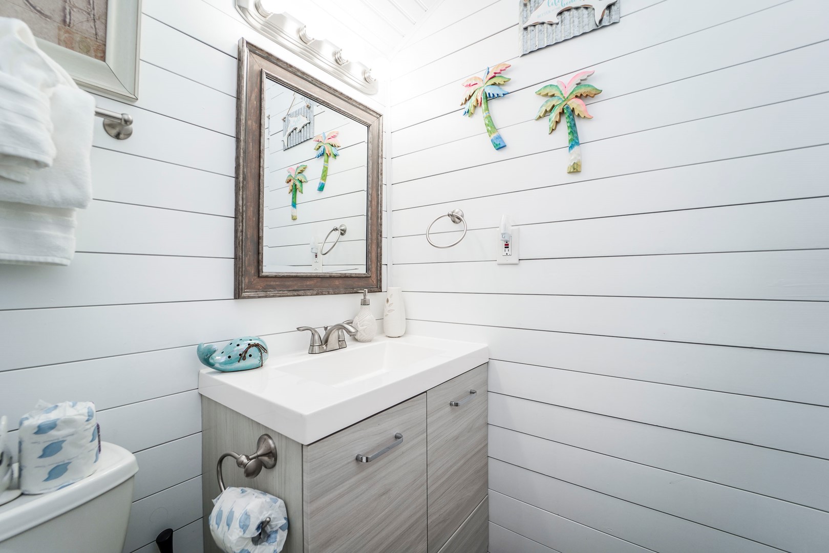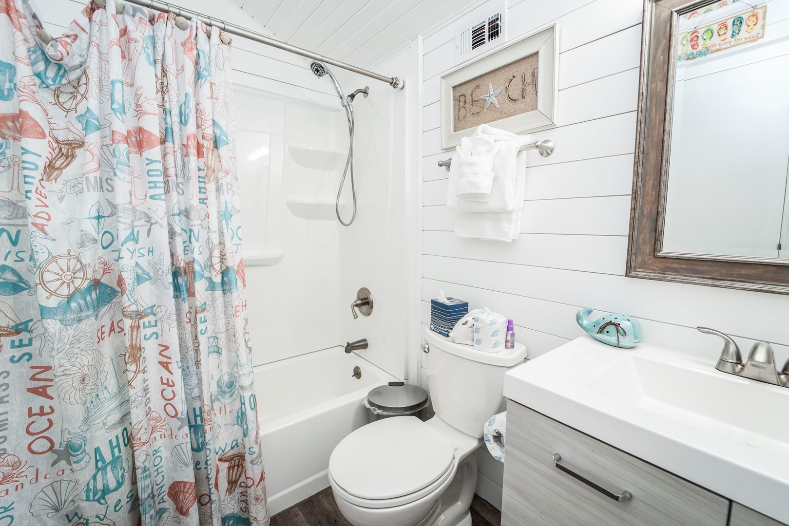 Panhandle Getaways furnishes a few essential items for guests to utilize until they can get to the grocery store. Initial Supplies include: Dishwasher soap, small washing machine powder, each bathroom has amenities (like hotel but NOT restocked) shampoo, conditioner, soap bar. One roll of toilet paper in each bathroom and one paper towel roll in the kitchen. All bed linens and towels are provided. We encourage guests to bring beach towels for use at the pool and beach.