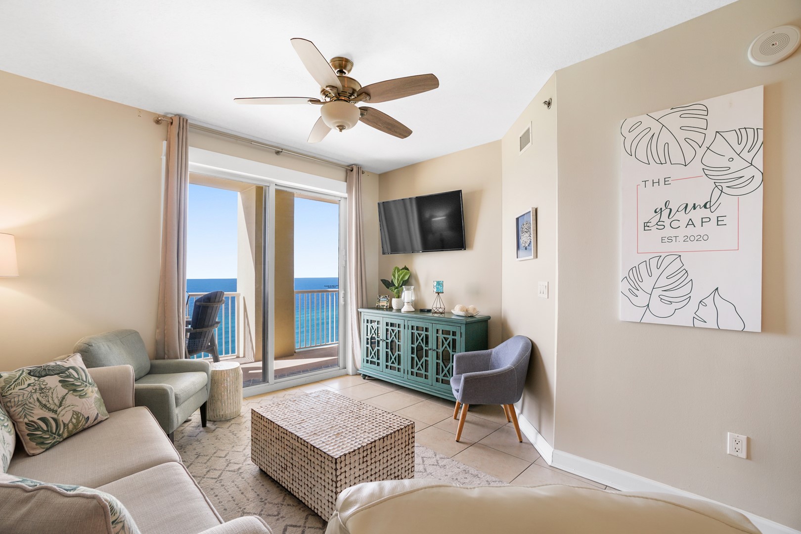 * Living Area with Gulf View and TV