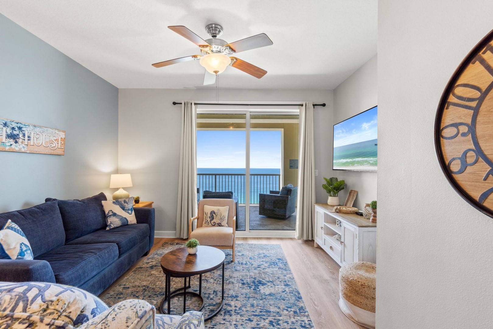 Grand Panama Beach Resort 1-2003 located in Panama City Beach, FL by Panhandle Getaways is a 2 bedroom plus bunk area, 2 bathroom direct beachfront vacation home rental complete with all of the conveniences of home.