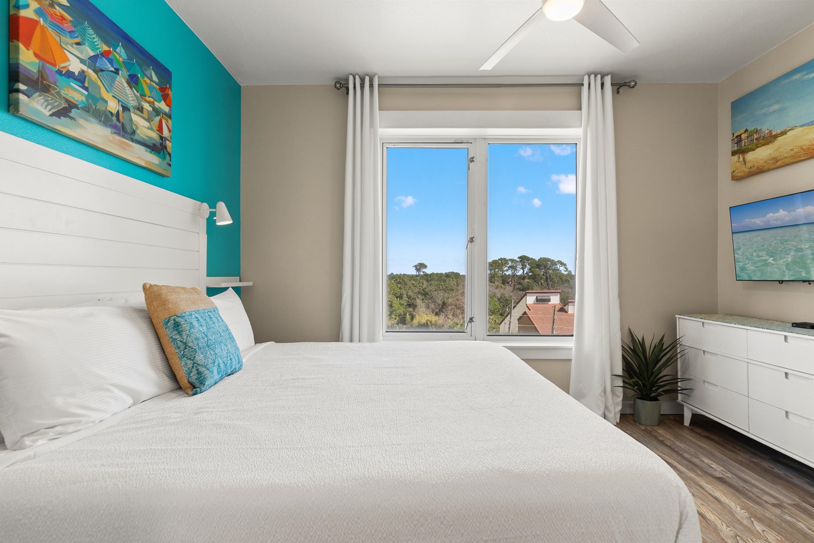 • Bedroom 2: King bed, 55" Smart TV