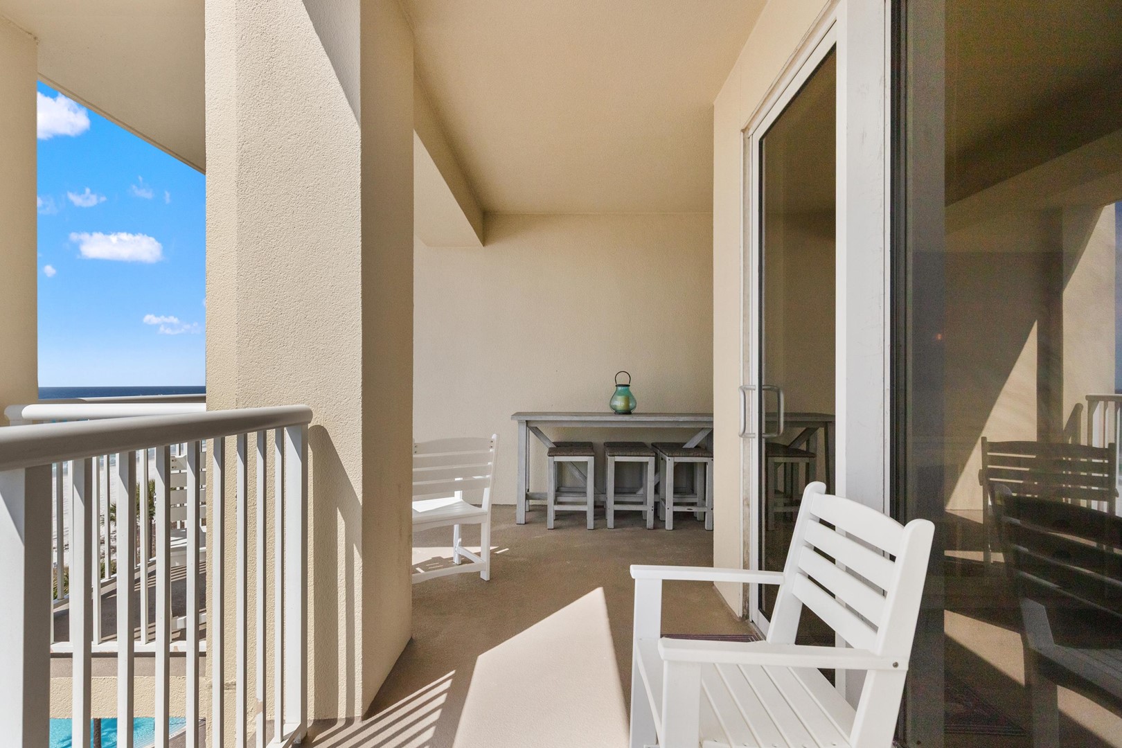 • Large private balcony with ample seating and stunning Gulf views