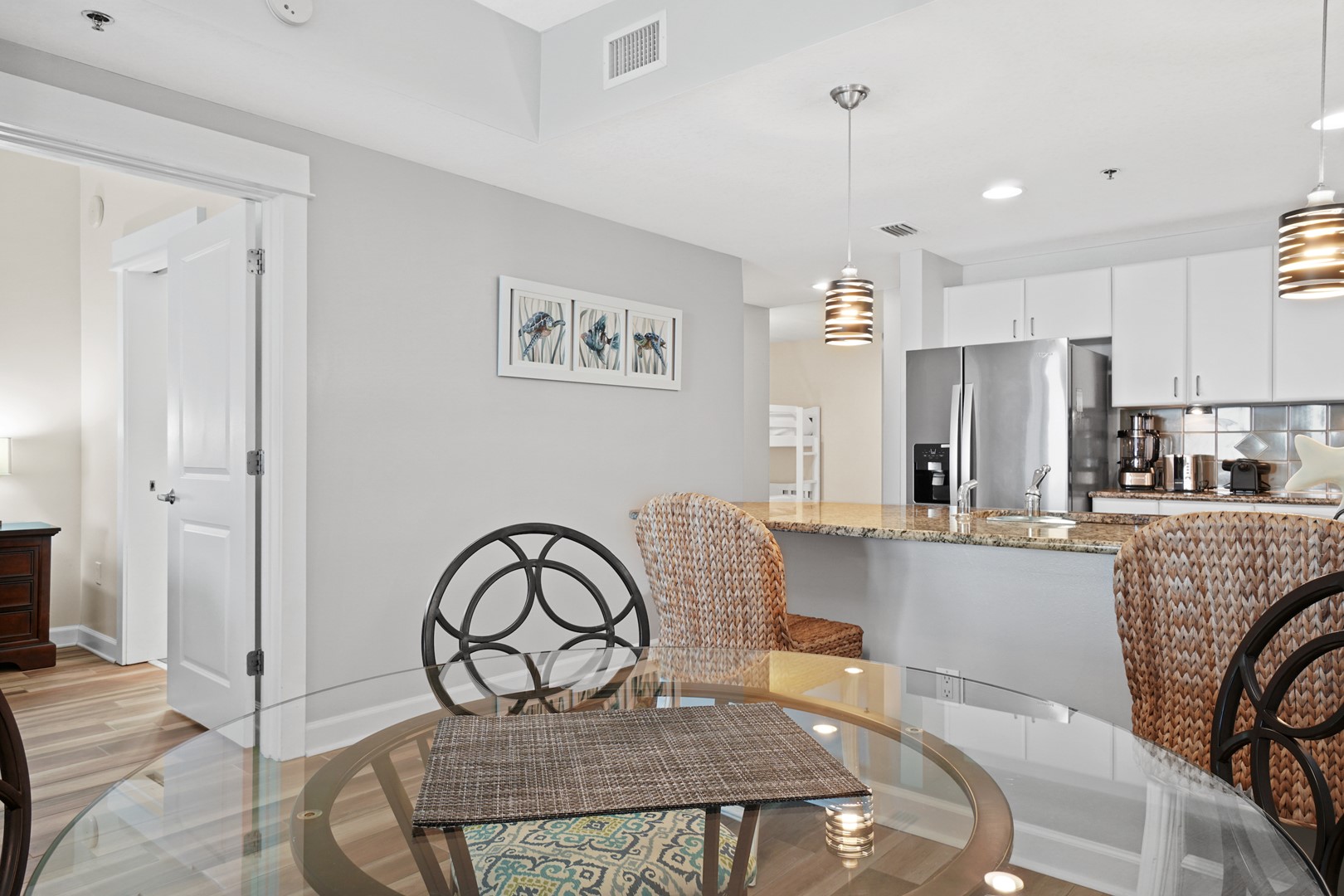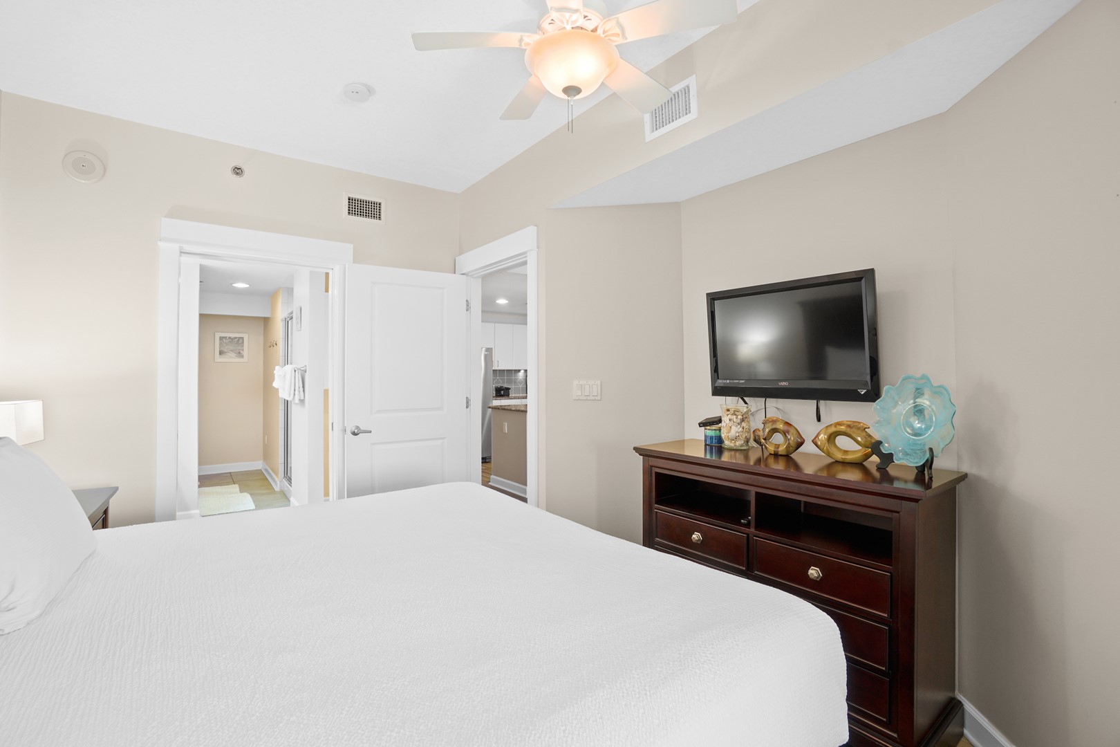 Pets are only allowed in rental properties marked pet friendly and must be disclosed at time of booking. A non-refundable pet fee is charged for anyone bringing a pet, including Emotional Support Animals. Guests who wish to bring a pet to Grand Panama must apply for a conditional license and receive a pet tag, which is to be displayed on the pet while on property. Guests must complete their animal registration form, provide proof of vaccinations, and applicable documentation for service animals to receive a pet tag. Pet tags are picked up at the front desk of tower 2. The leash law applies at all times besides in your condo. The beach, pool, and pool deck are not pet friendly areas. Conditional licenses can be revoked if the association finds the pet without a tag, is vicious, or a nuisance to guests. A pet or any evidence of a pet found on the property that was not previously disclosed by the guest is cause for eviction with forfeiture of moneys paid plus additional cleaning charges. DOGS ONLY 2 pet maximum, 20 lb. weight limit