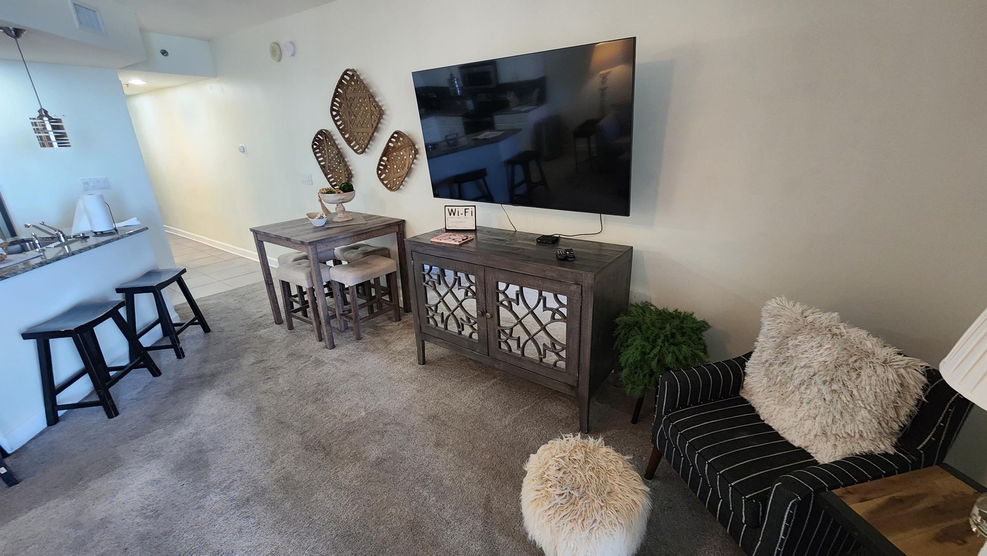 * Living Area - 65" Smart TV, Balcony Access