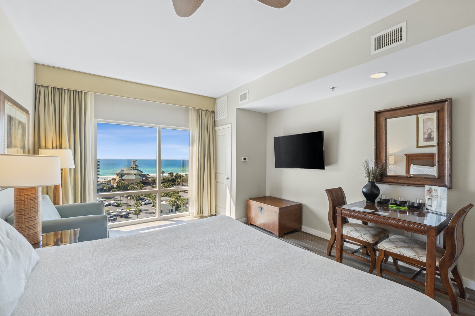 • Master Bedroom – King bed, Gulf views, en suite bathroom, TV