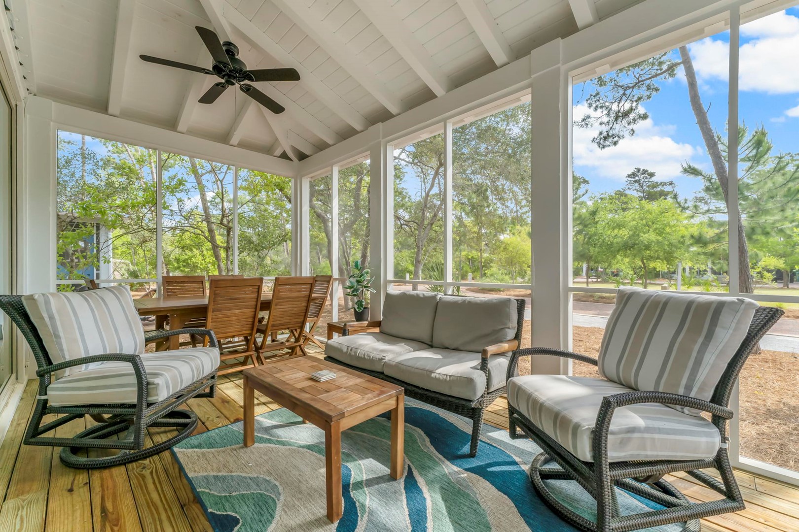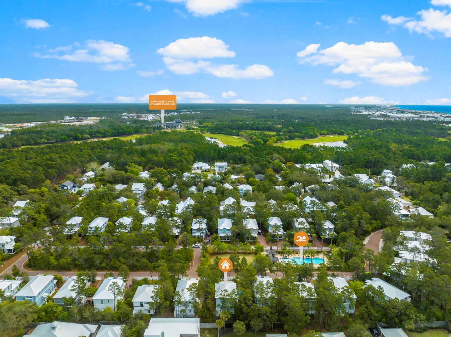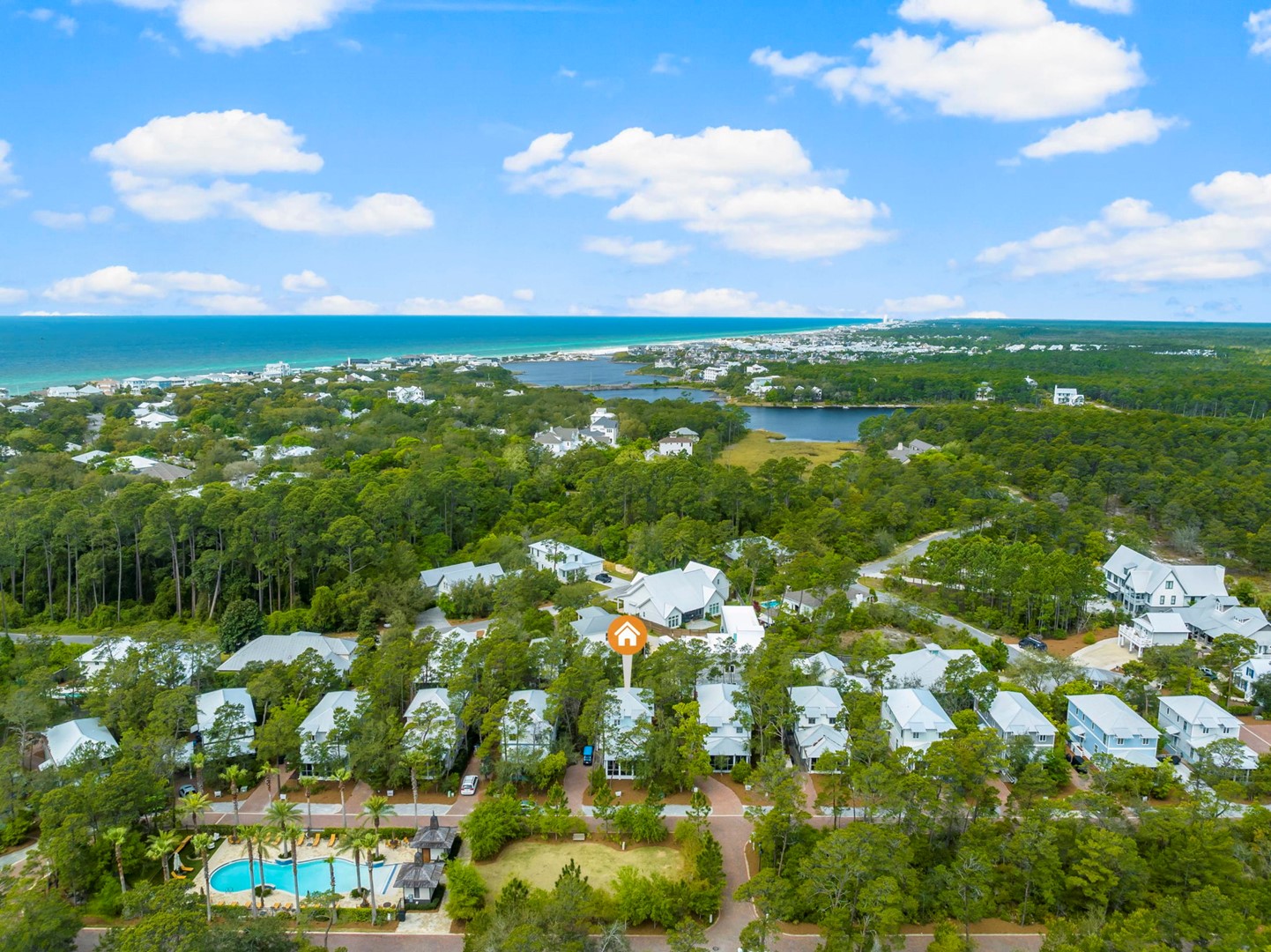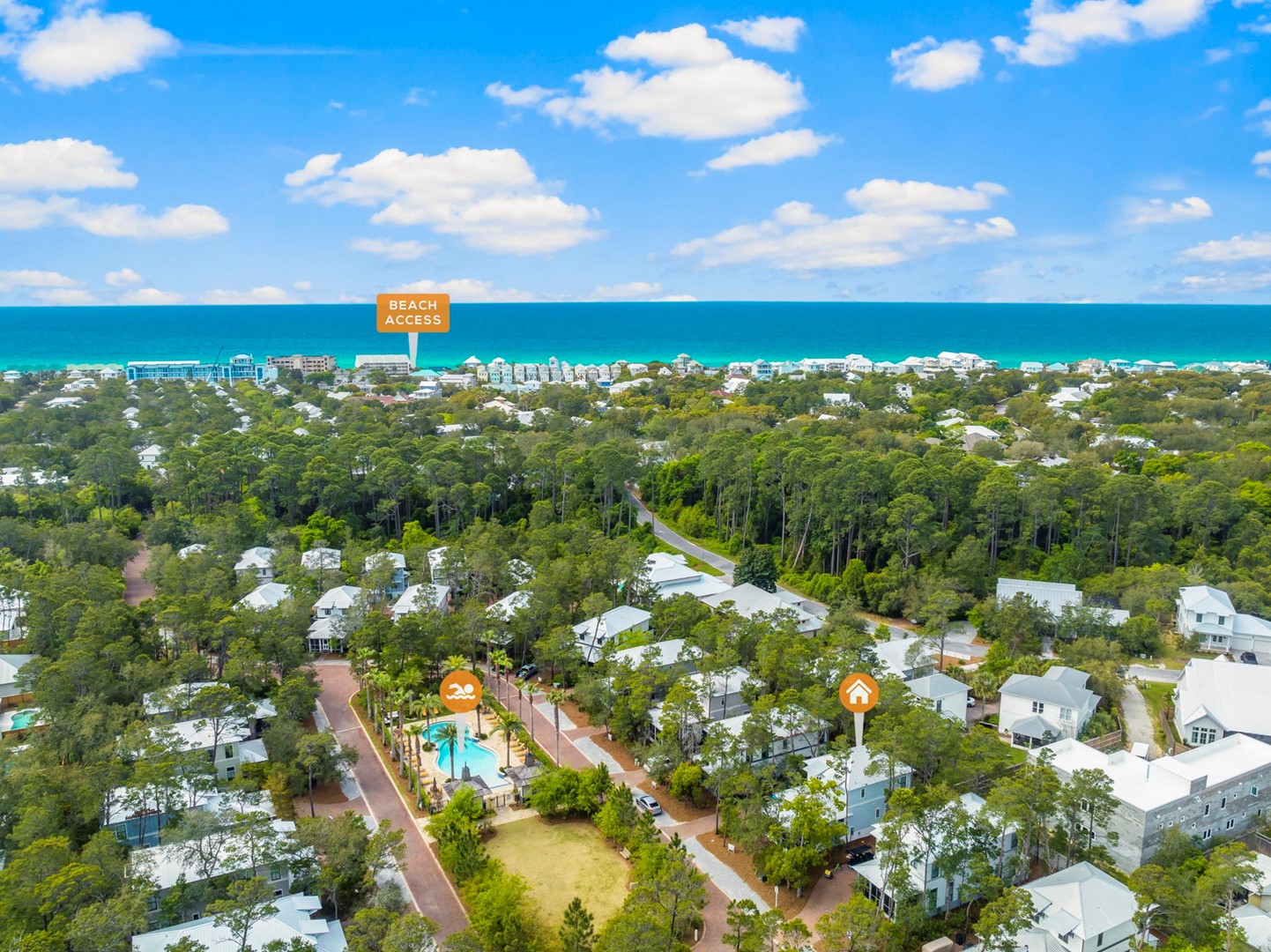 One of its prime features is the convenient public beach access at Gulf Lakes, providing guests with easy and direct entry to the pristine shores that have made 30A famous. Beyond the sun-kissed beaches, a resort-style pool awaits, nestled seamlessly within the natural wooded beauty of the community. Here, guests find solace after a day of coastal adventures, immersing themselves in the serene surroundings that define the allure of Magnolia Cottages.