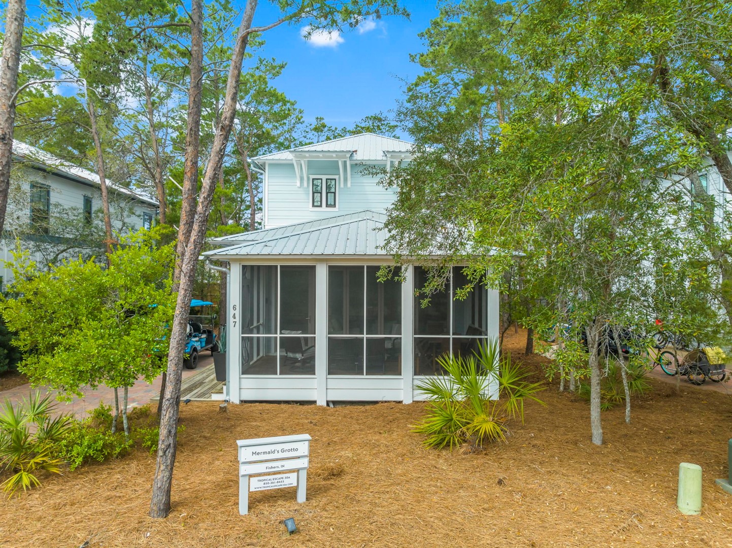 30A Beach House Magnolia Cottages by the Sea, Mermaids Grotto, located in Seacrest Beach, FL by Panhandle Getaways is a 3 bedroom, 3.5 bathroom beach vacation home complete with all of the conveniences of home. 6 Seater Golf Cart, 4 Bikes included