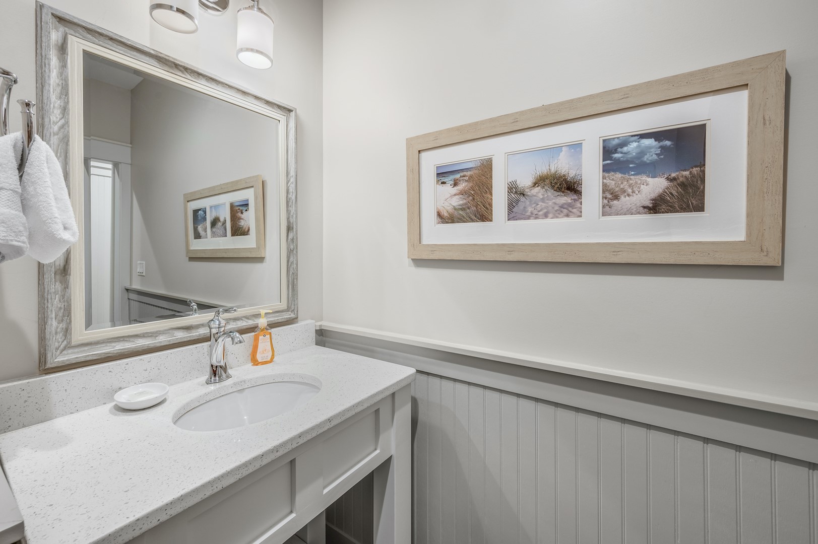 Panhandle Getaways furnishes a few essential items for guests to utilize until they can get to the grocery store. Initial Supplies include: Dishwasher soap, small washing machine powder, each bathroom has amenities (like hotel but NOT restocked) shampoo, conditioner, soap bar. One roll of toilet paper in each bathroom & one paper towel roll in the kitchen. All bed linens & towels are provided. We encourage guests to bring beach towels for use at the pool and beach.