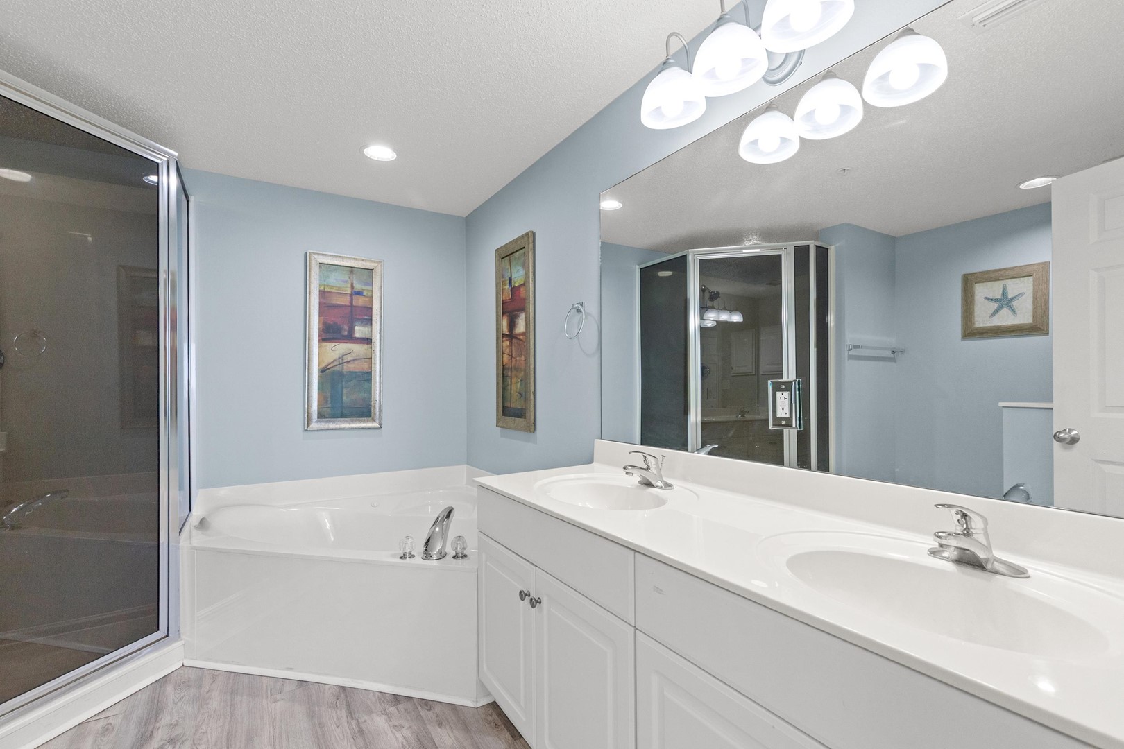 The amenities of the resort feature five (5) pools, 2 indoor heated pools, 2 hot tubs, 2 hard surface tennis courts, beach services, movie theater and game room. The H2O Bar and Grill serve food and drinks poolside. The Market serves Starbucks coffee; there is a Bloody Mary bar within the market along with other snacks, treats, reading material and basic sundries. The Market Bar serves breakfast, lunch and dinner items and the menu is fantastic.