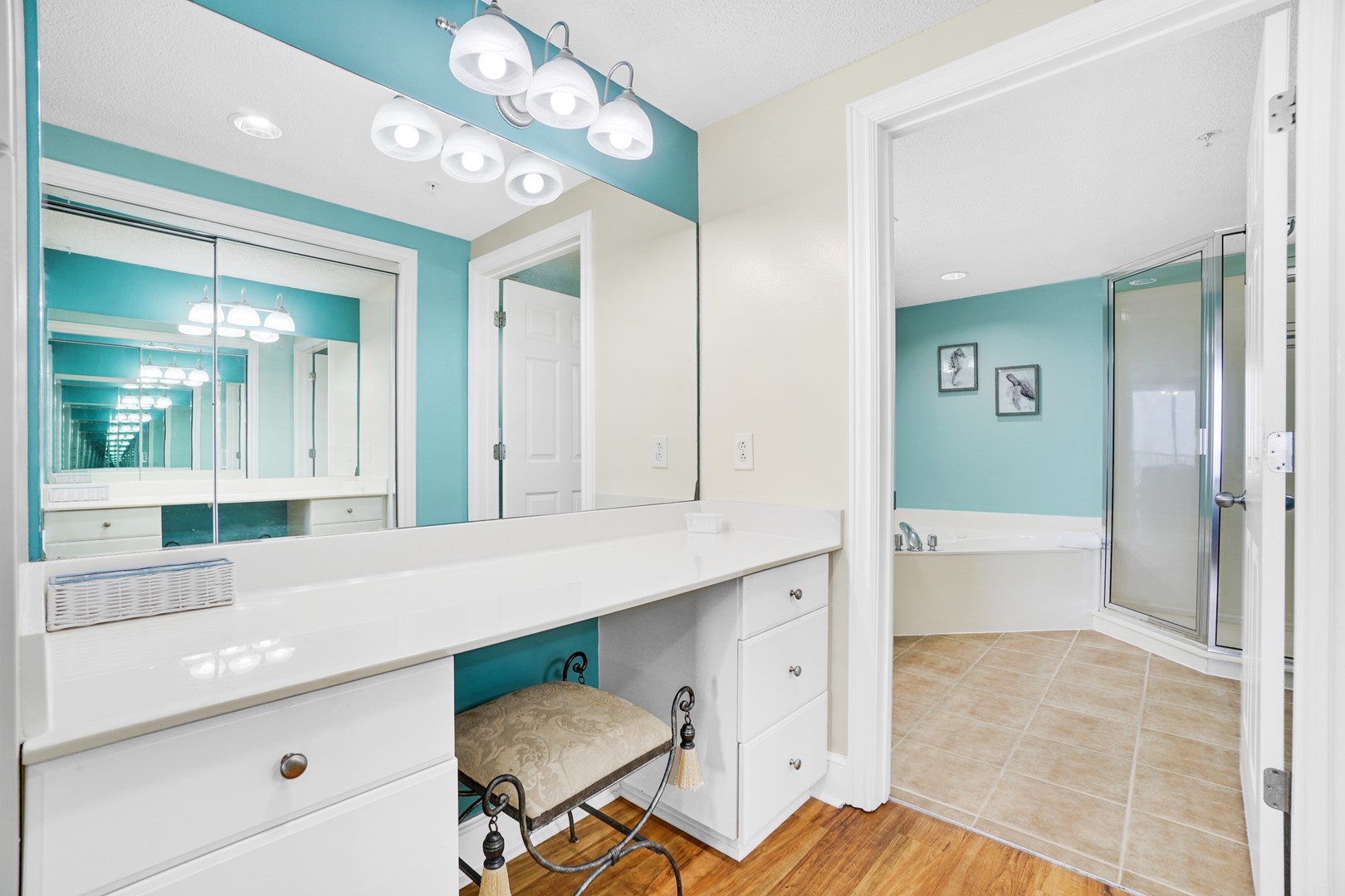 The amenities of the resort feature five (5) pools, 2 indoor heated pools, 2 hot tubs, 2 hard surface tennis courts, beach services, movie theater and game room. The H2O Bar and Grill serve food and drinks poolside. The Market serves Starbucks coffee; there is a Bloody Mary bar within the market along with other snacks, treats, reading material and basic sundries. The Market Bar serves breakfast, lunch and dinner items and the menu is fantastic.