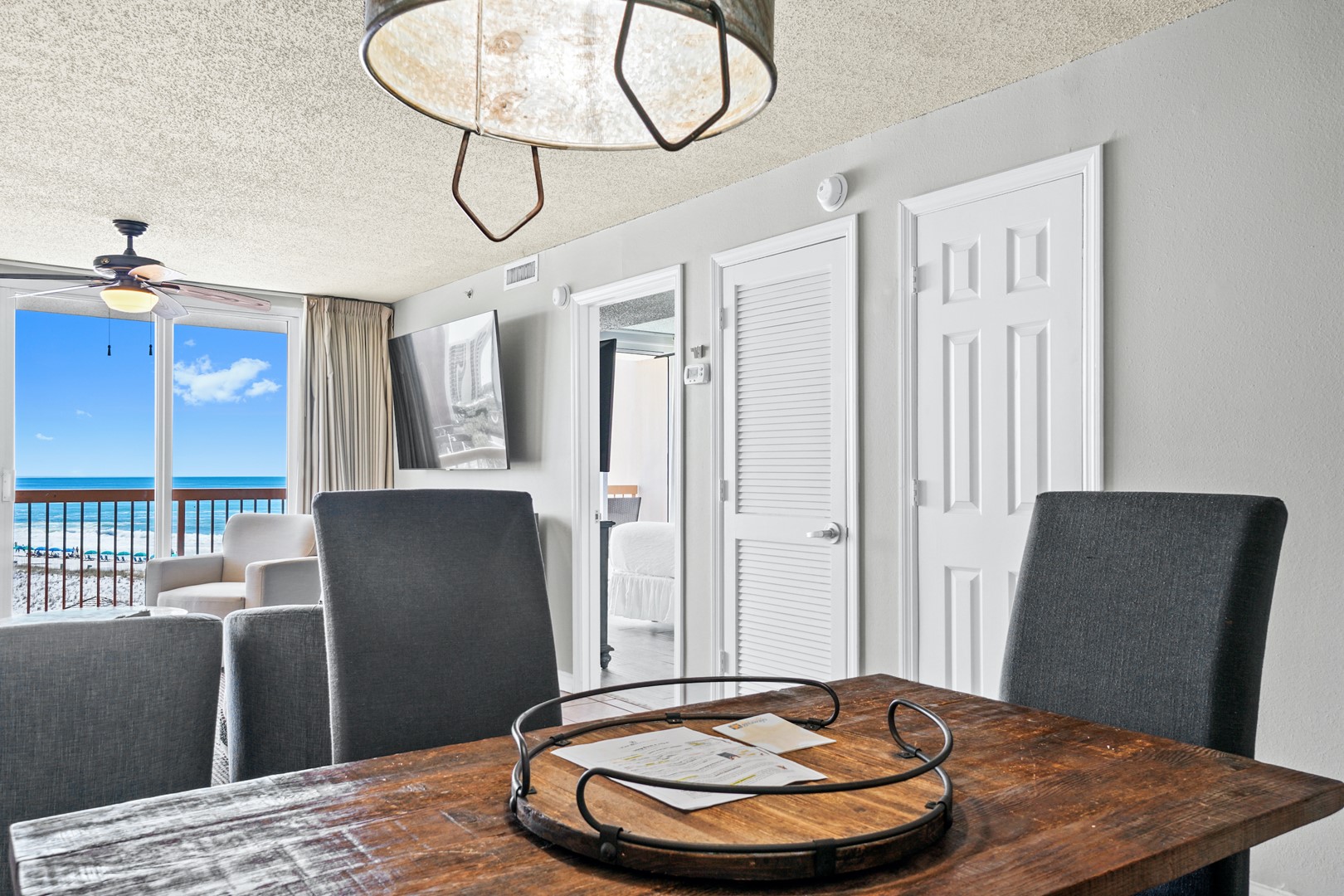 We had to push our trip back a day because of Hurricane Sally and Panhandle Getaways was great pushing the whole trip back a day. We also added a day to the trip. Super easy. Since there were no guests in the condo for 2 and half days before our arrival we asked about early check in and the gentleman said “No problem. Just call is when you get here and we will get you an early code.” I called about an hour before arriving to get the code for checking but the lady i spoke with said it hadn’t been cleaned and when it was ready they would call. I called back after an hour and they said the same thing. Called again after and hour and same thing. They kept trying to text the housekeeper and never heard anything back so I said “screw it” and waited until checkin at 4. Went to condo and code worked and lo and behold the condo had already been cleaned. Never in my life have I heard of a condo rental/hotel to not have a unit cleaned immediately following a guest departure. Panhandle Getaways just didn’t want to worry with letting somebody checkin early. Other than dealing with that, the condo was good. View is great. Sand seemed to be all over the floor but other than that, it was fine.Colby J. - Posted: 10/8/2020