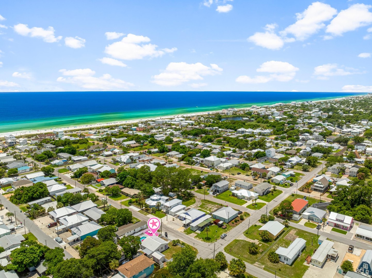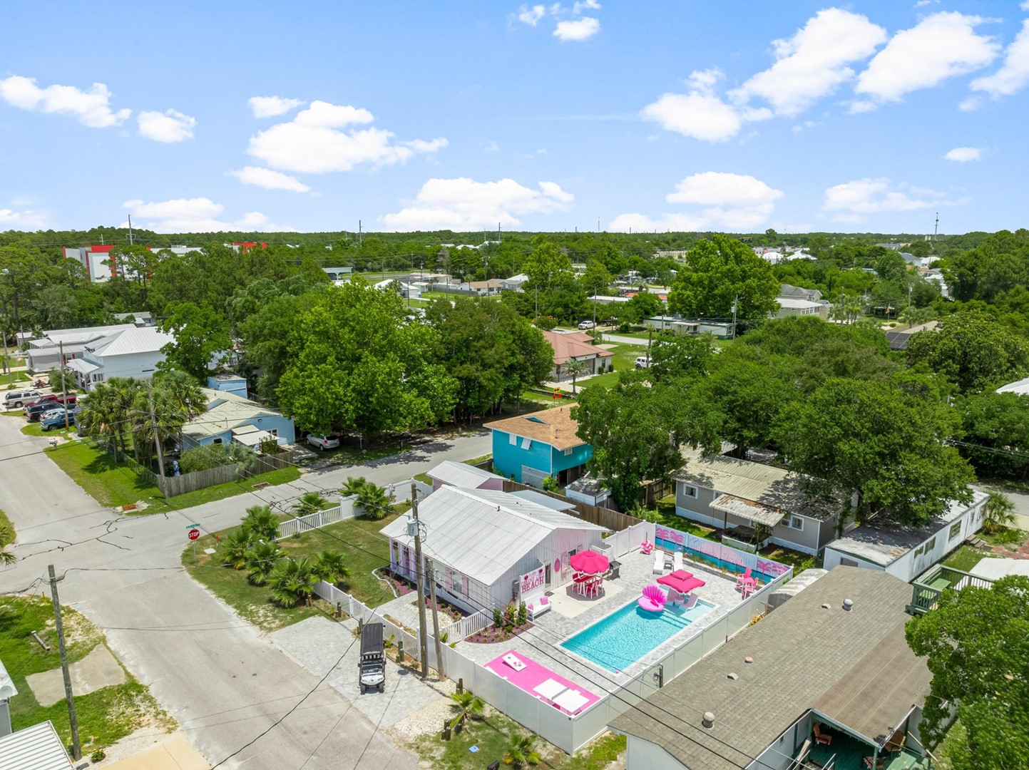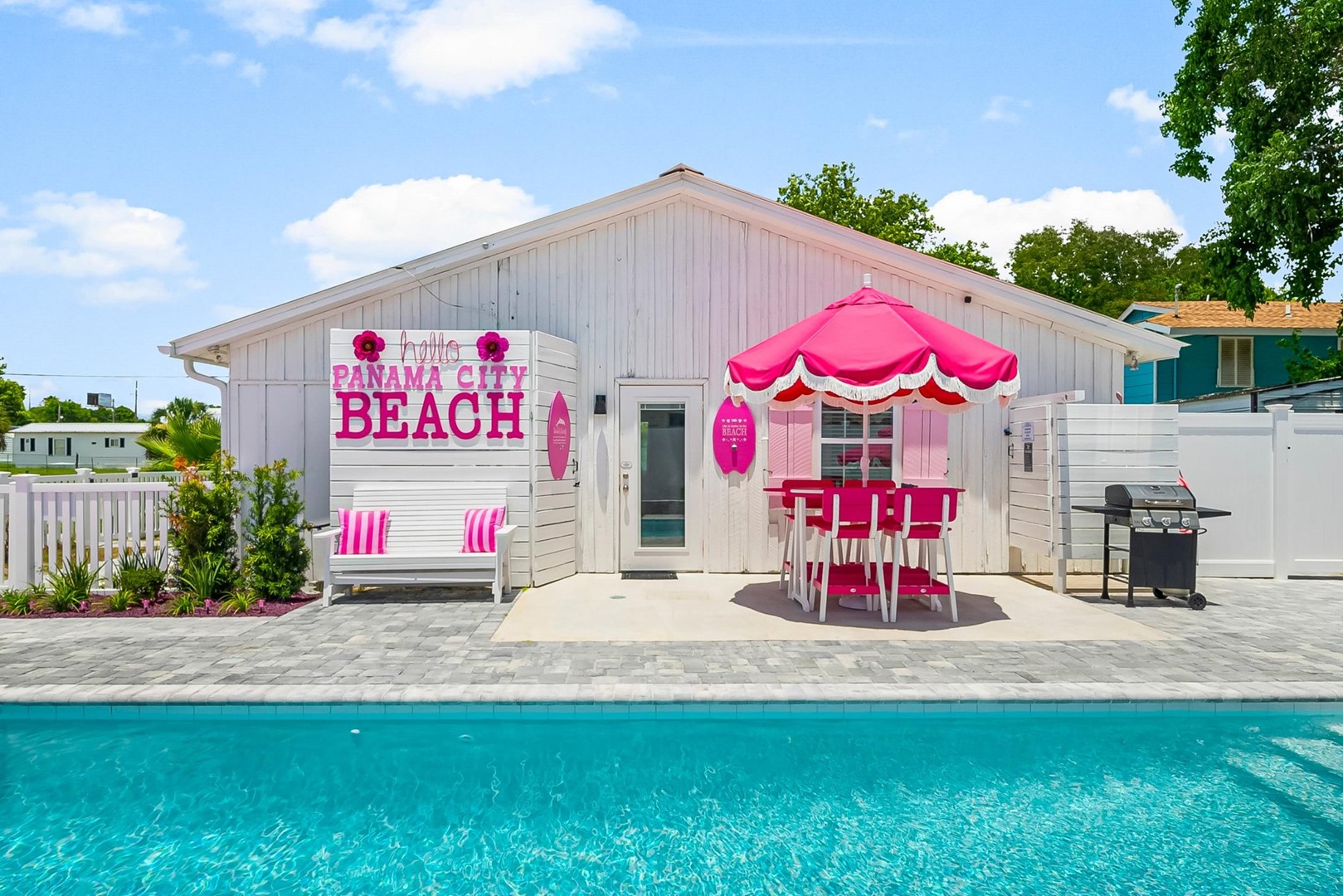 Welcome to Pink Prerogative, Panama City Beach’s ultimate pink paradise! This whimsical 3-bedroom, 1-bathroom vacation home combines bold style, comfort, and fun in every detail, from the pink pool deck and outdoor game area to the colorful, fully equipped kitchen.