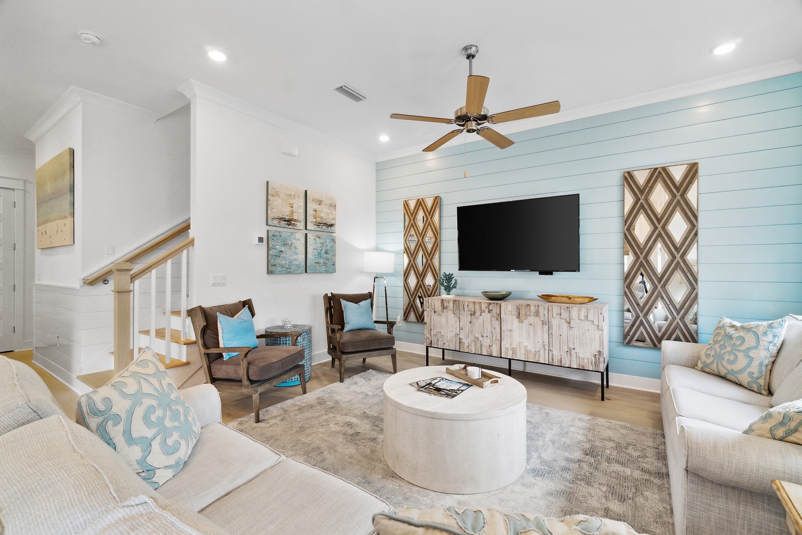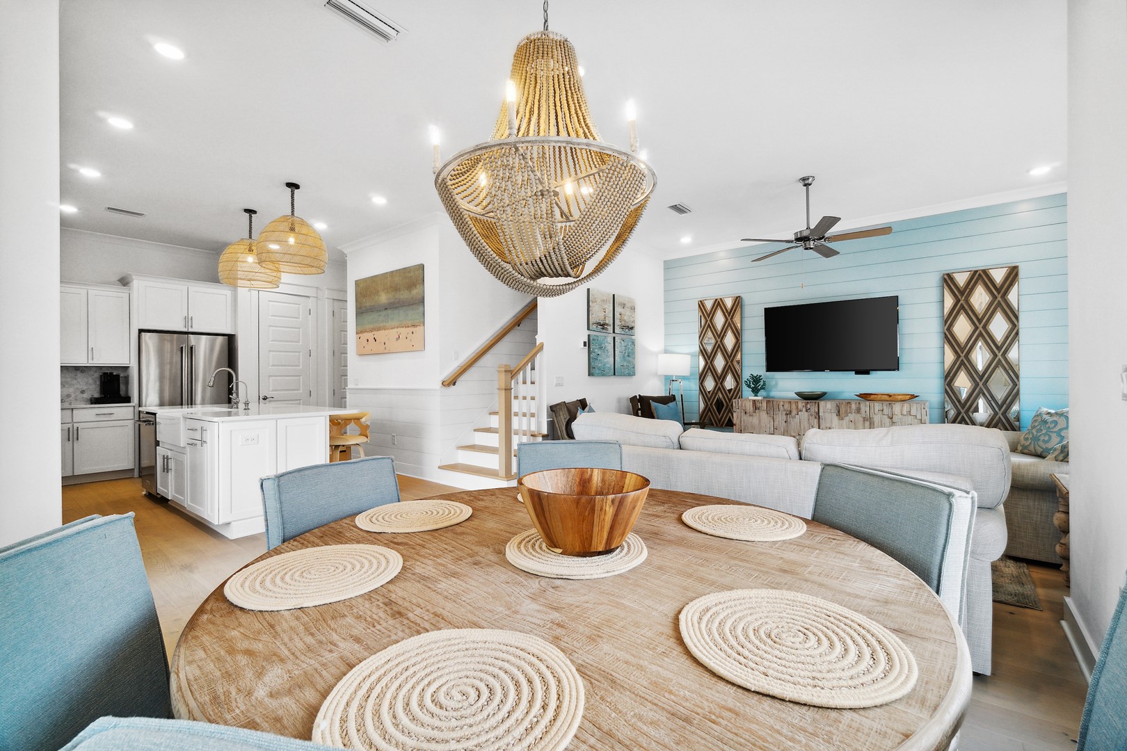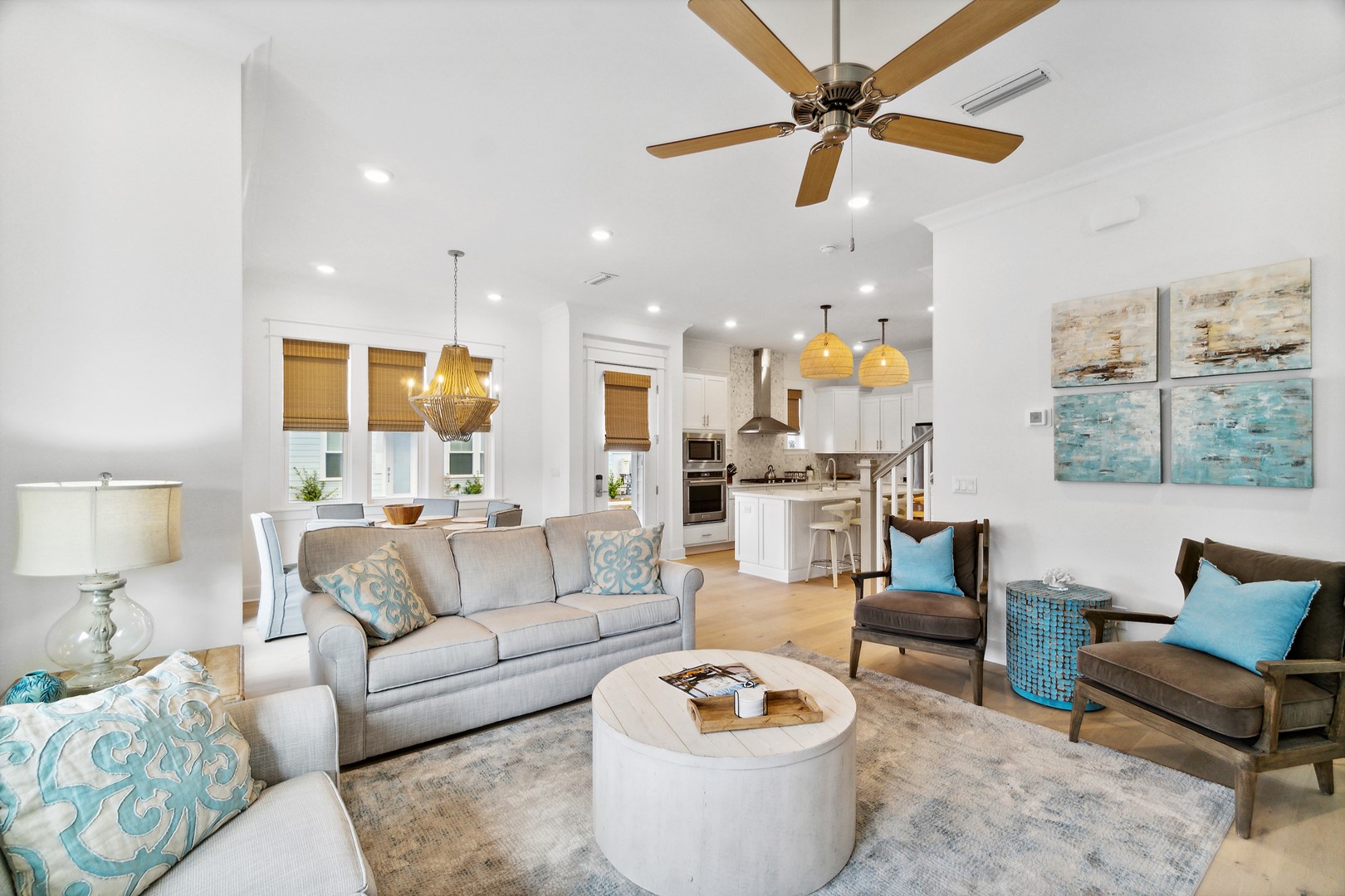 Prominence 30A pet friendly rental, Breezy Bliss, located in Watersound, FL by Panhandle Getaways is a 3 bedroom, 2.5 bathroom vacation home complete with all of the conveniences of home. Pet Friendly, 6 Seater Golf Cart and 4 Bikes Included with your stay.