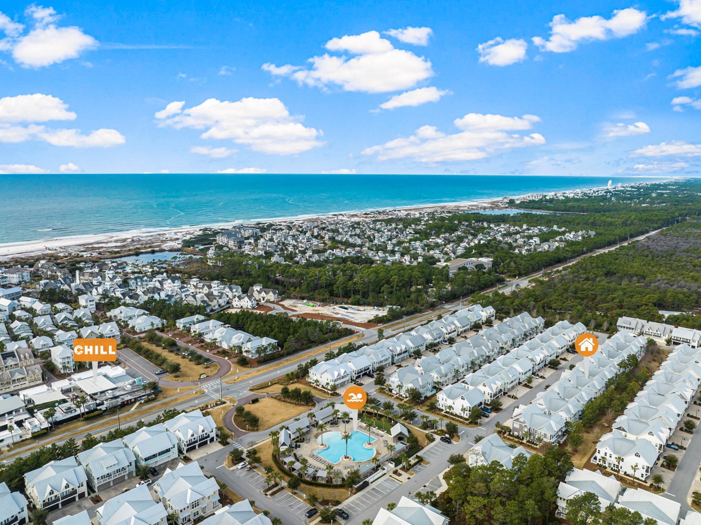 Beach Accesses for ALL Prominence homes are via South Walton public beach access points. Most Prominence guests utilize Deer Lake State Park beach access or other nearby public beach accesses. Prominence homes do not have direct beach access via Watersound Club nor do they have access to Watersound private club facilities.