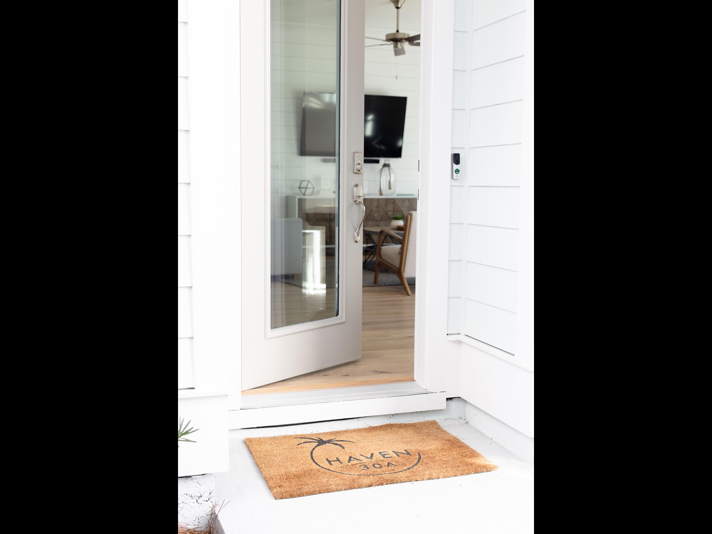 Please be aware there is a surveillance camera in the form of a Ring Doorbell device.