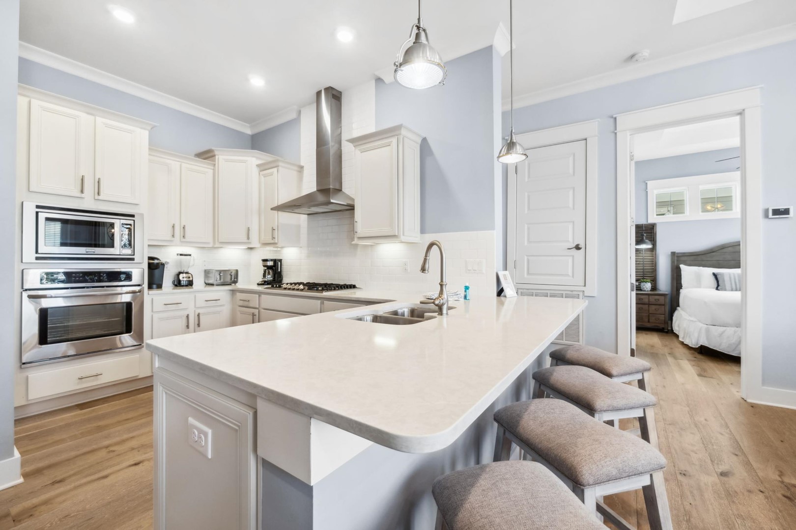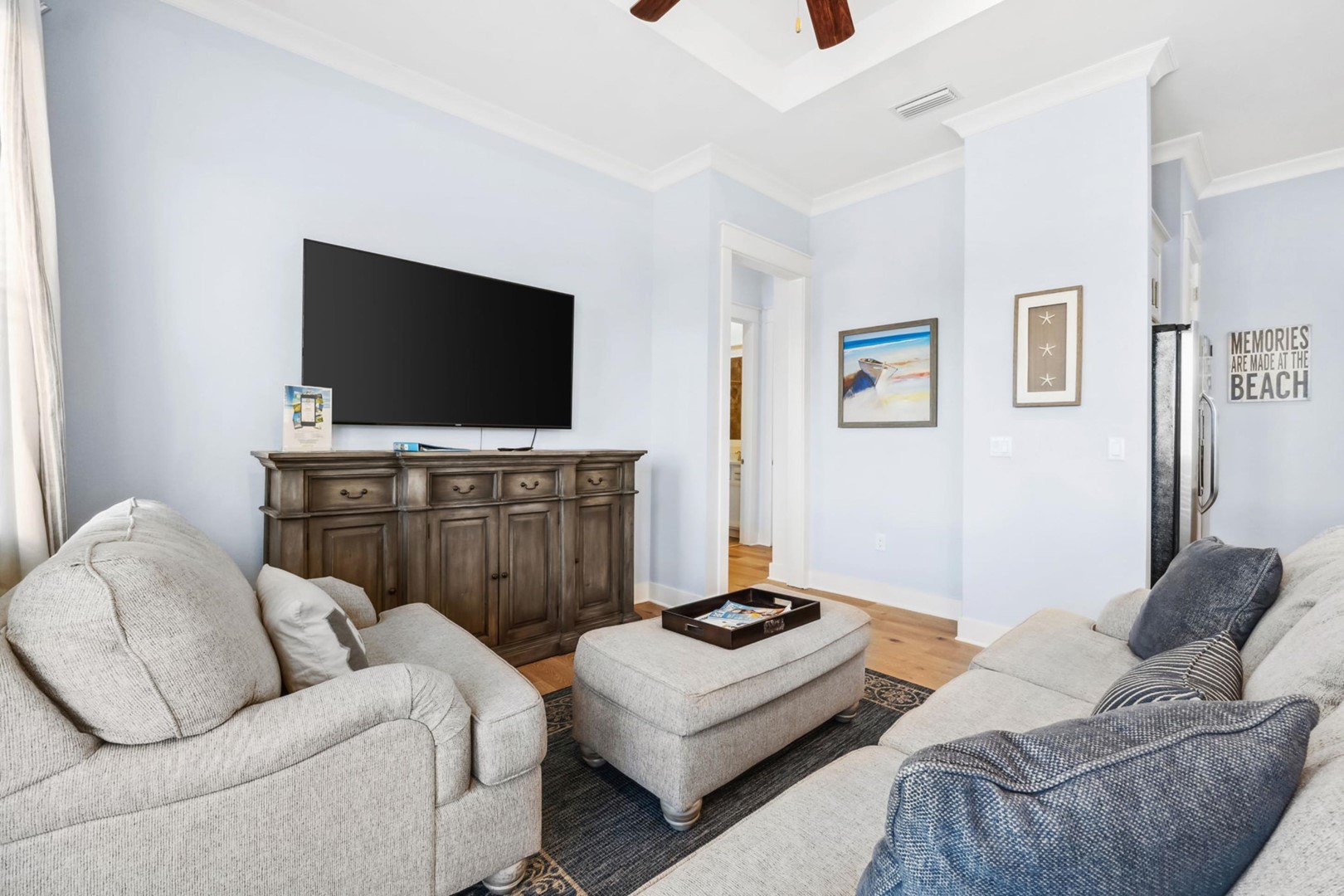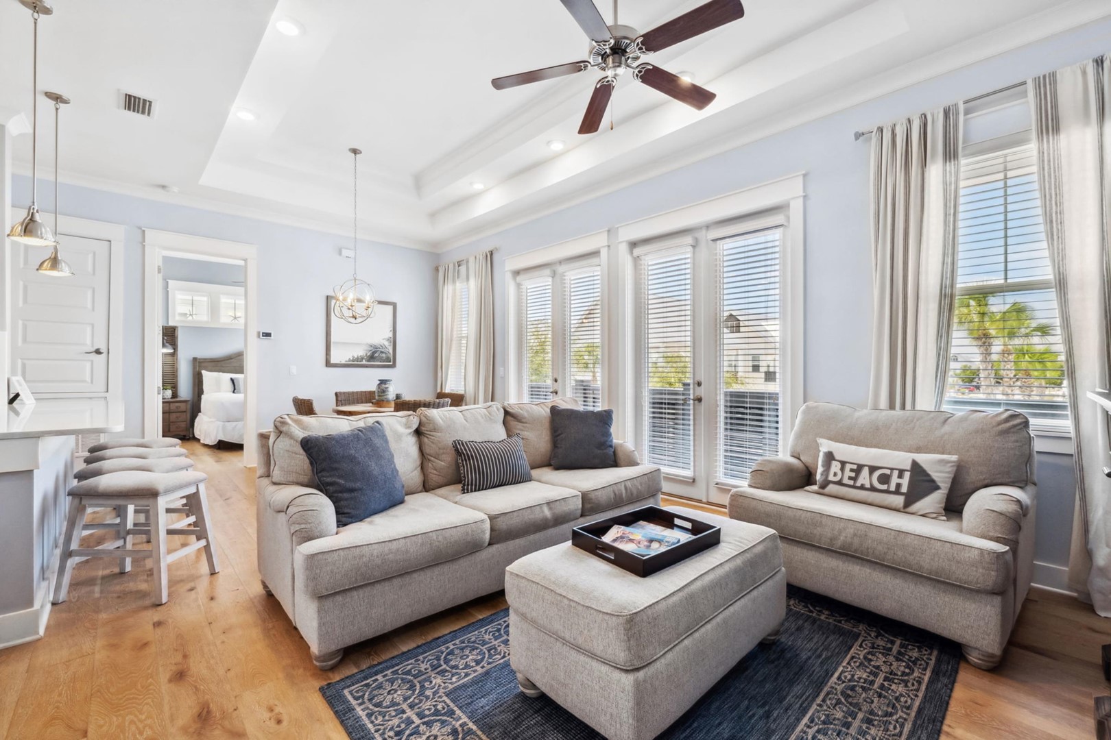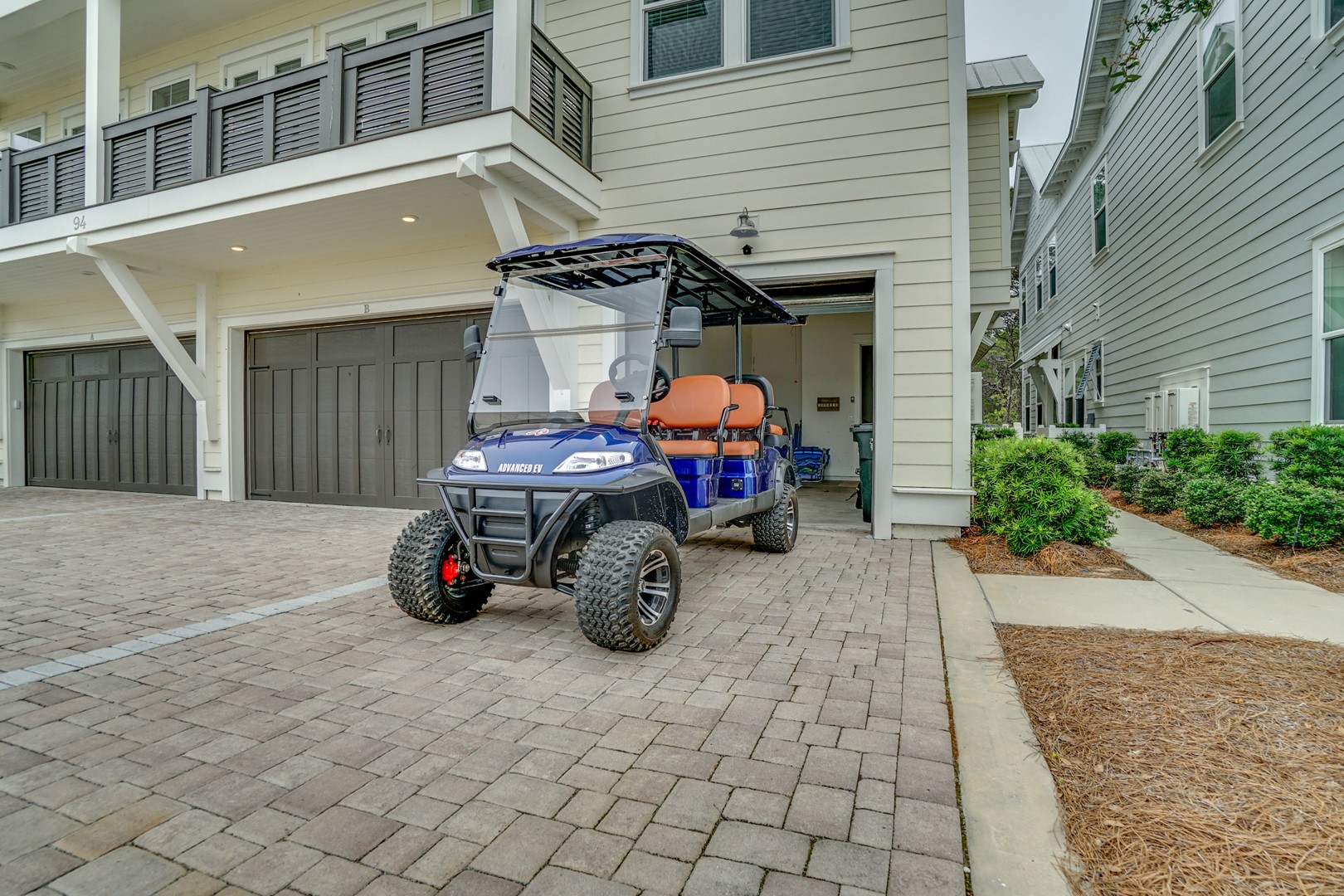 Prominence 30A rental, "Lazy Daze" in Watersound, FL by Panhandle Getaways is a 2 bedroom, 2 bathroom vacation home complete with all of the conveniences of home. 6 seater golf cart and 4 bikes included with your stay.