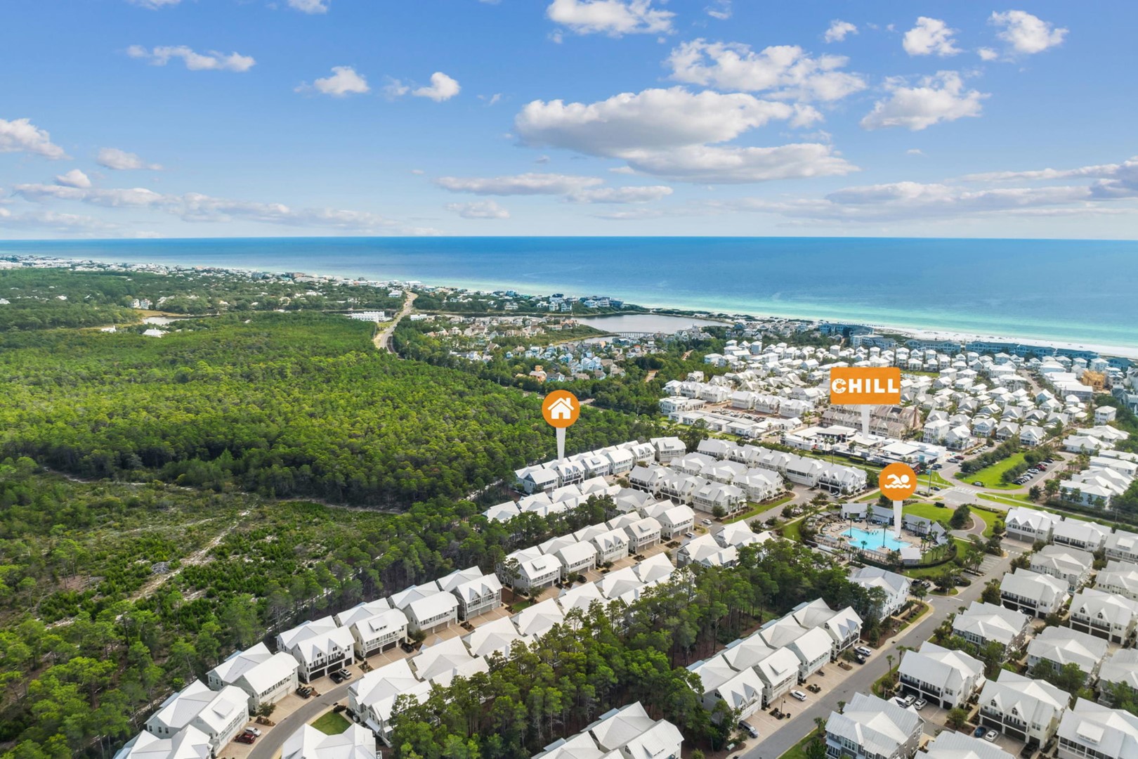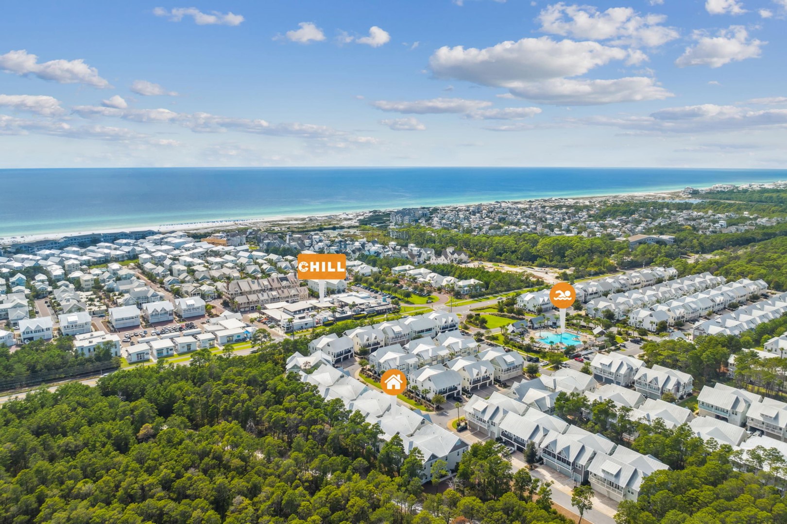 Beach Accesses for ALL Prominence homes are via South Walton public beach access points. Most Prominence guests utilize Deer Lake State Park beach access or other nearby public beach accesses. Prominence homes do not have direct beach access via Watersound Club nor do they have access to Watersound private club facilities.