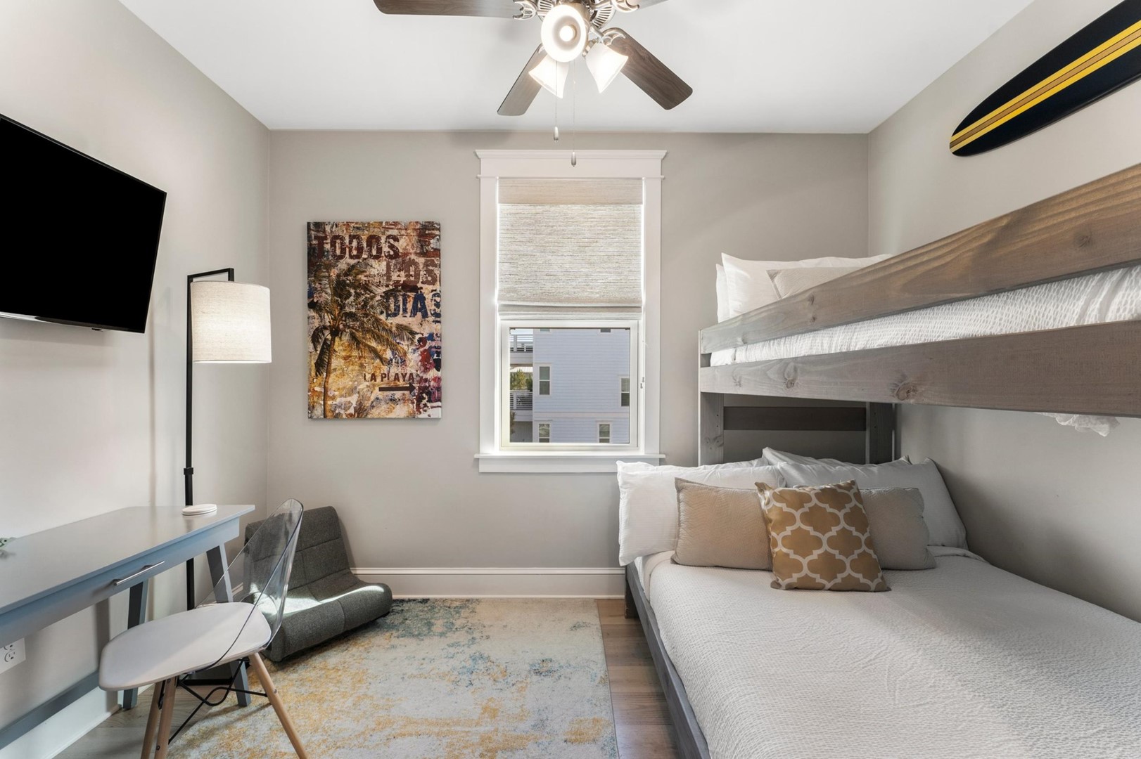 * Bedroom 5 - Bunk Bed (Twin/Full/Twin Trundle), 43" TV, Arcade Game, Gaming Chair, Barn Door