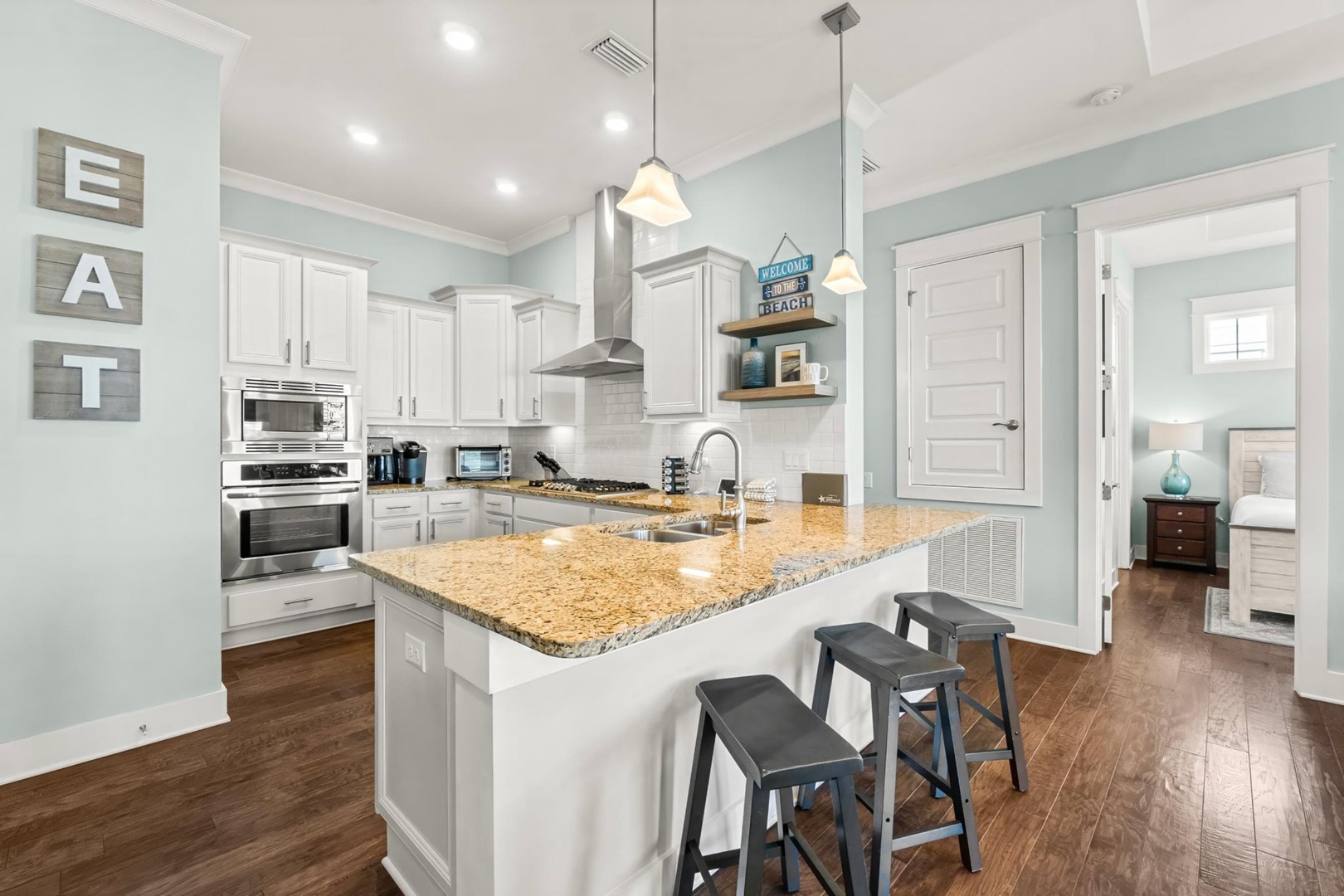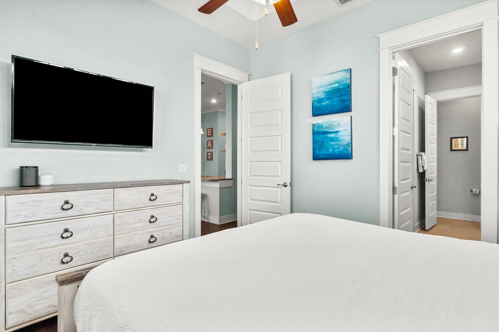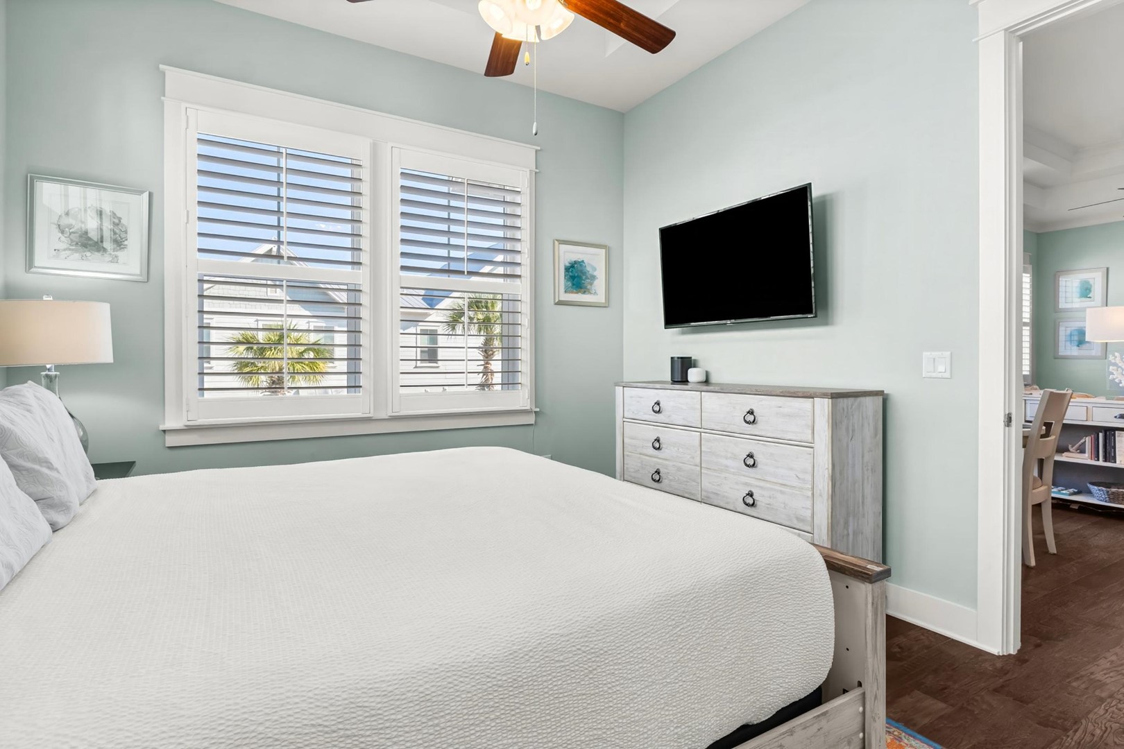 Welcome to Out of Office, a beautifully decorated 2-bedroom, 2-bathroom pet-friendly vacation home in Watersound, Florida by Panhandle Getaways. Perfect for families or small groups, this coastal retreat features a bright open living area with a 55" TV and Sonos sound system, a fully equipped kitchen with premium appliances, and inviting bedrooms designed for comfort. Enjoy cozy nights in with board games, books, and Blu-ray/DVD players, or explore 30A with four bikes and a 6-seater golf cart included with your stay.
