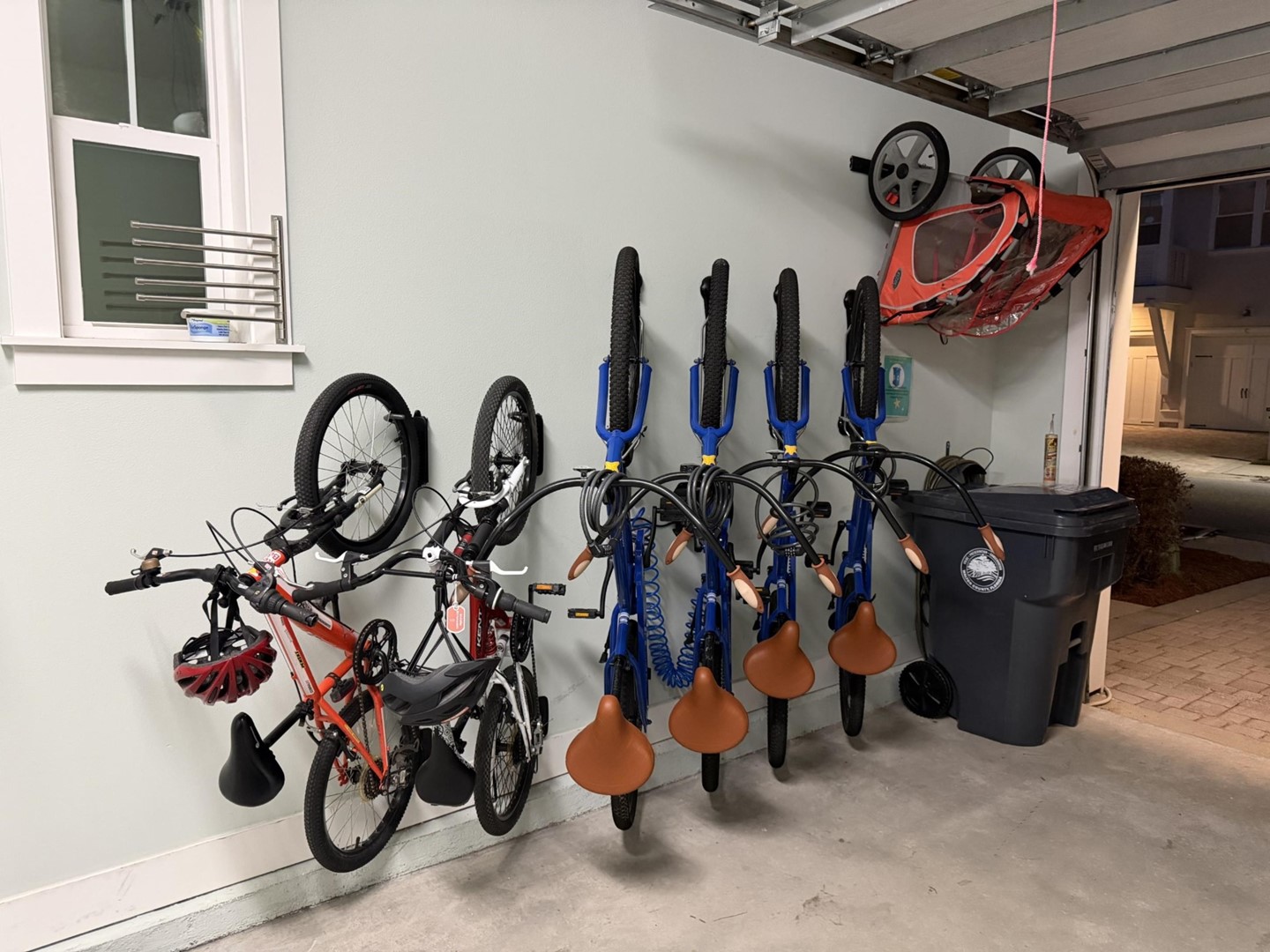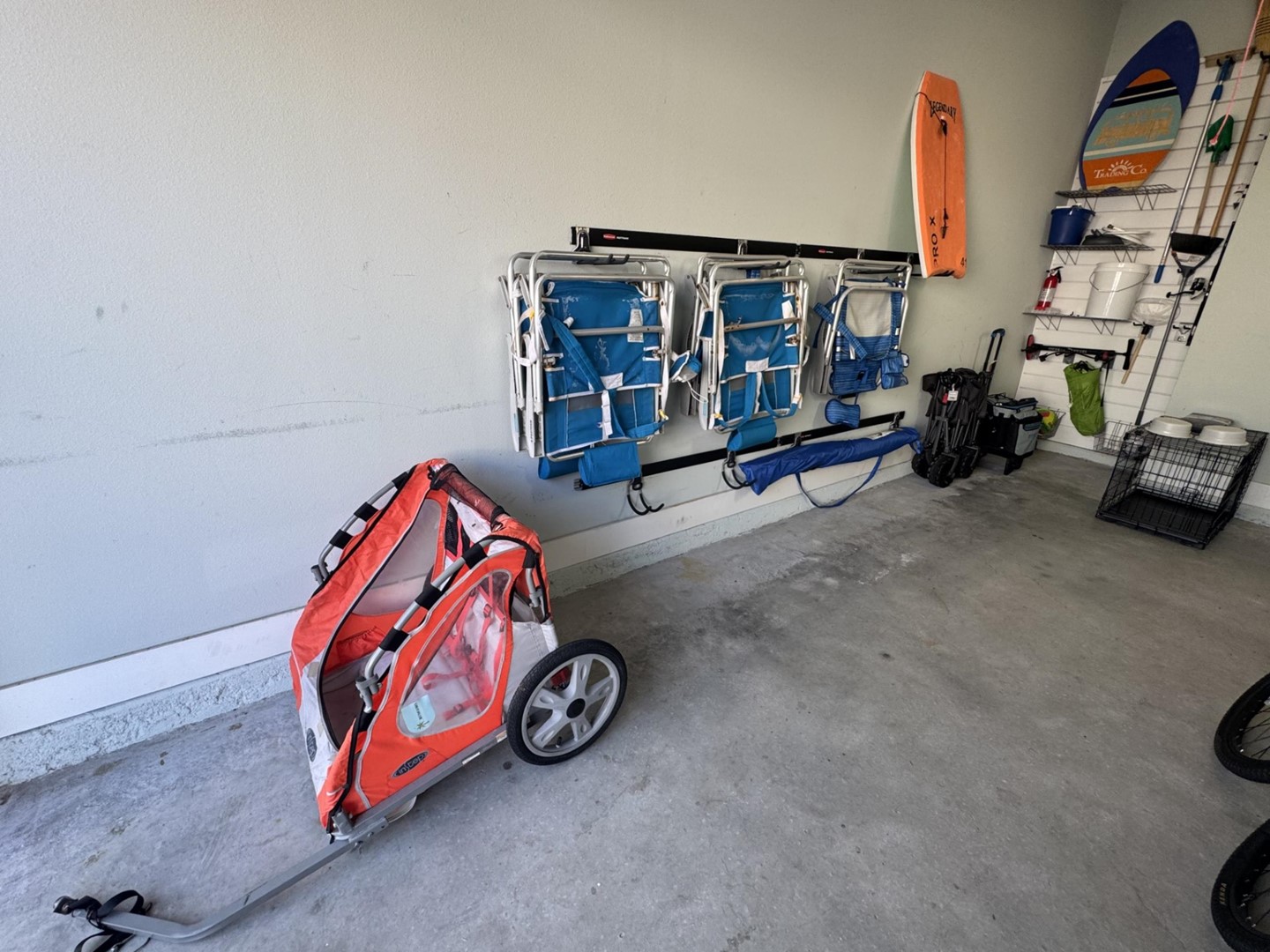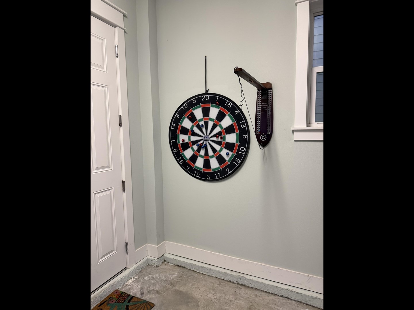 • Garage includes a game area with TV, Atari games, oversized Connect 4, velcro dart board, and hook-and-ring game