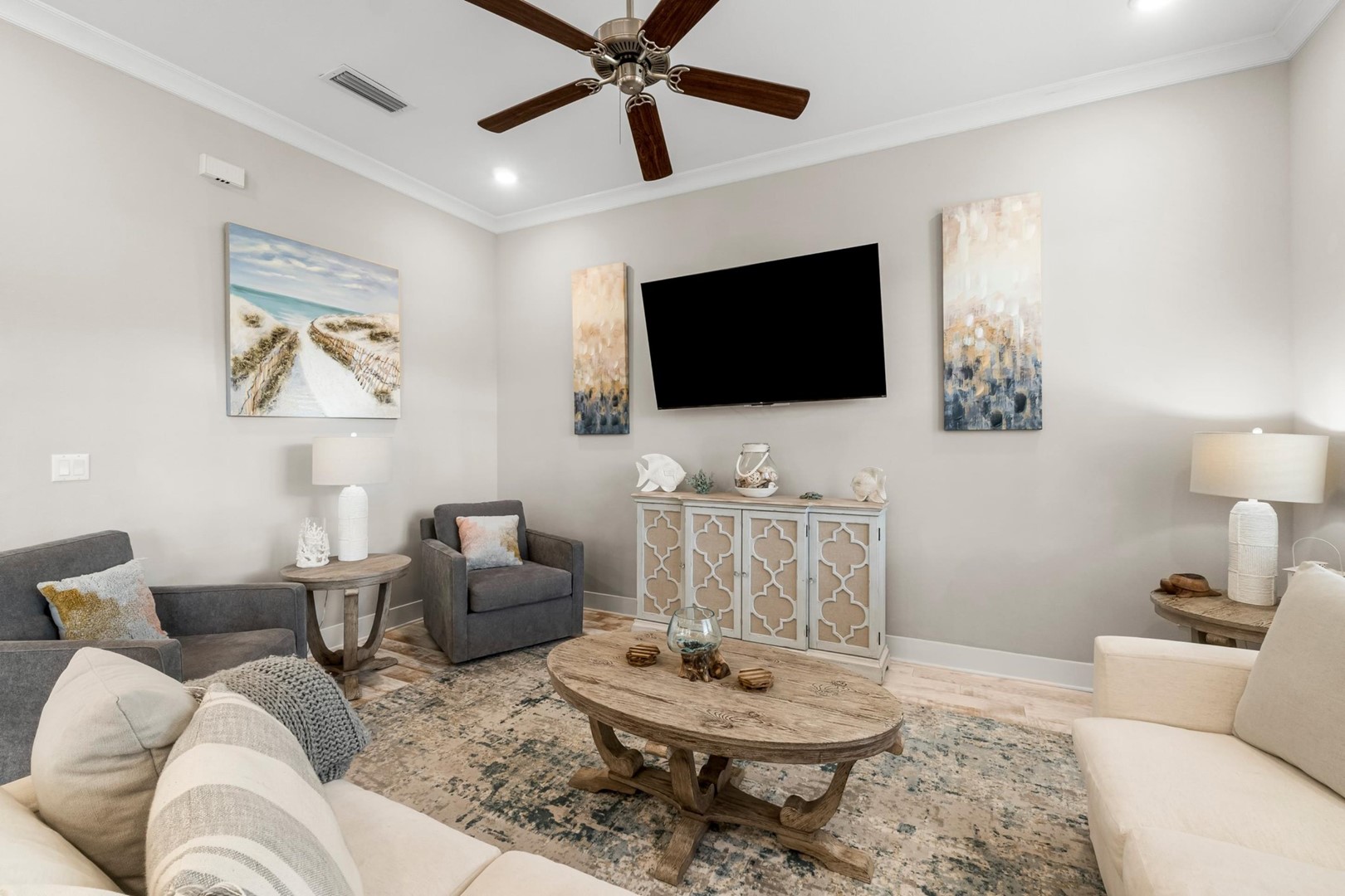 * Living Area - 65" Smart TV, Qn Sleeper Sofa