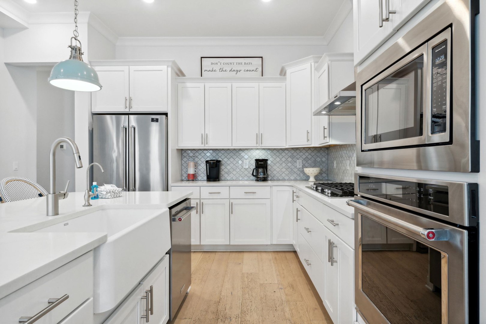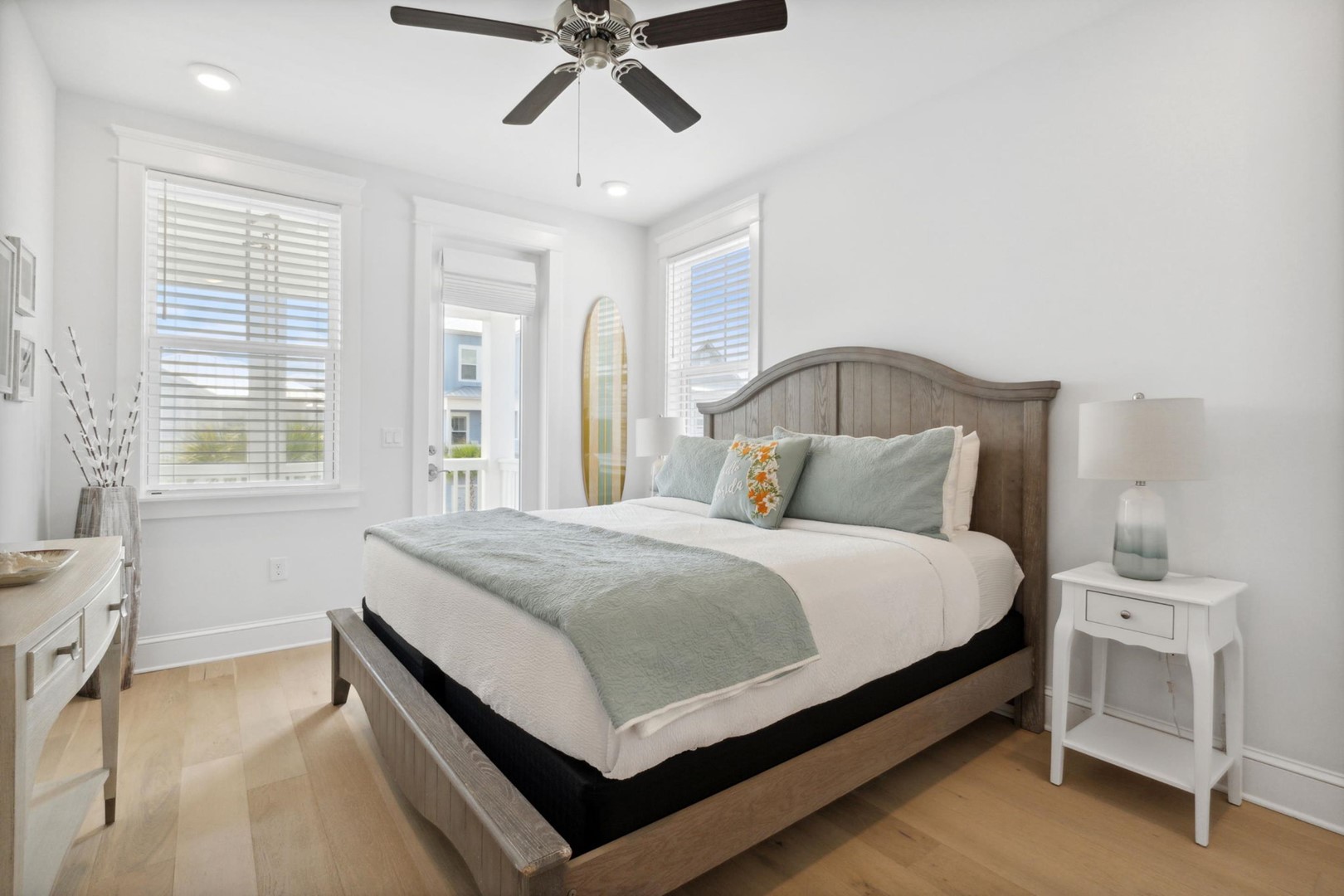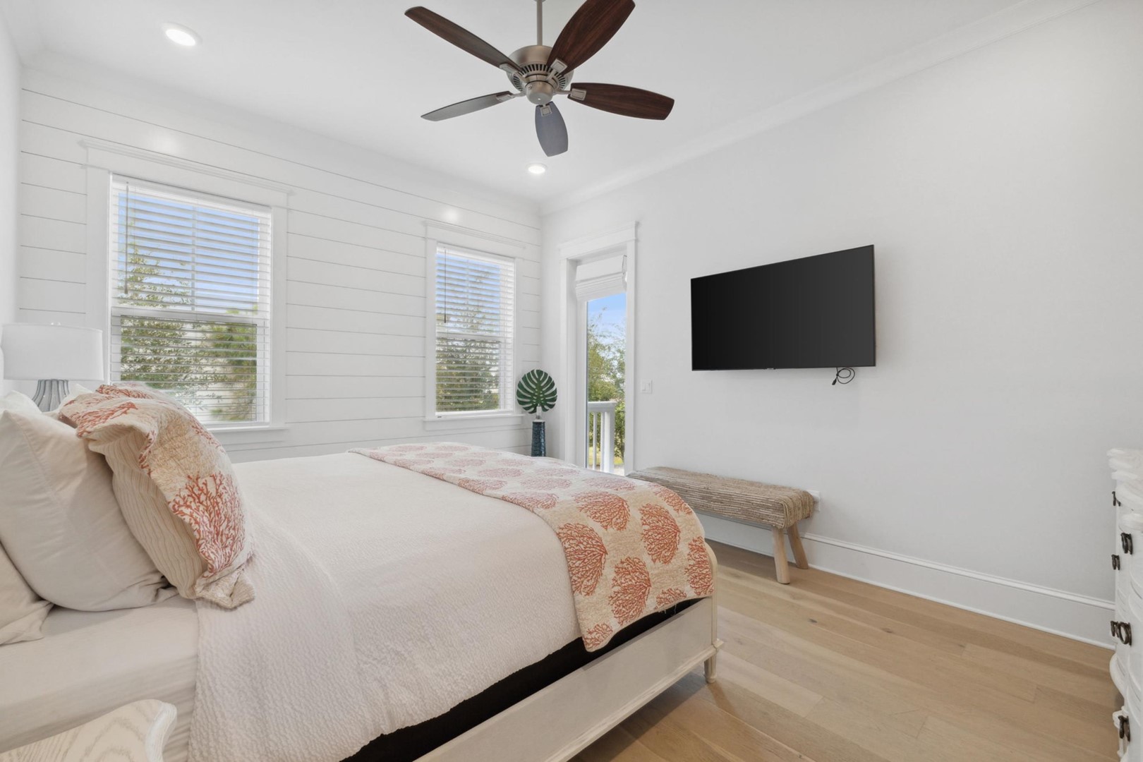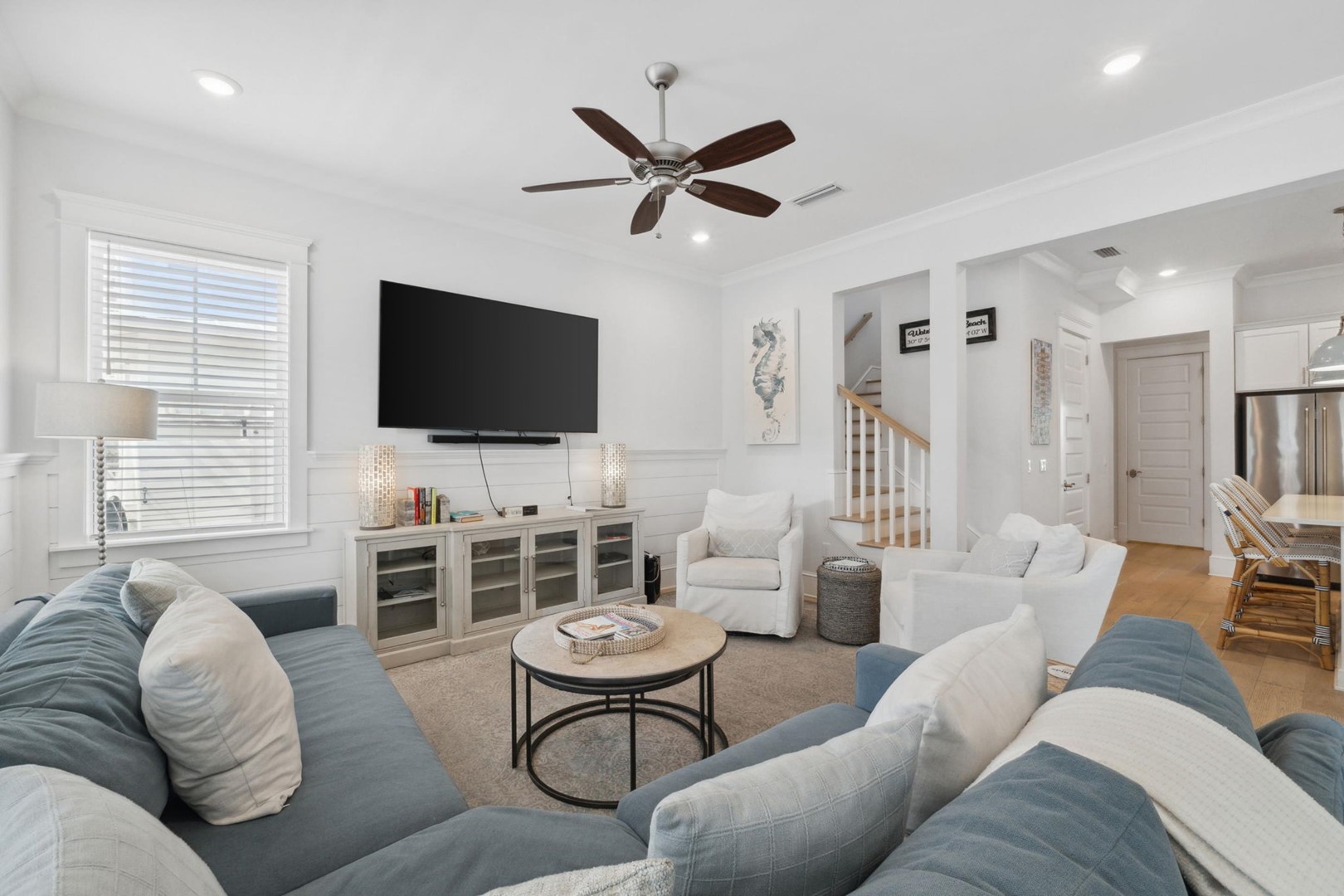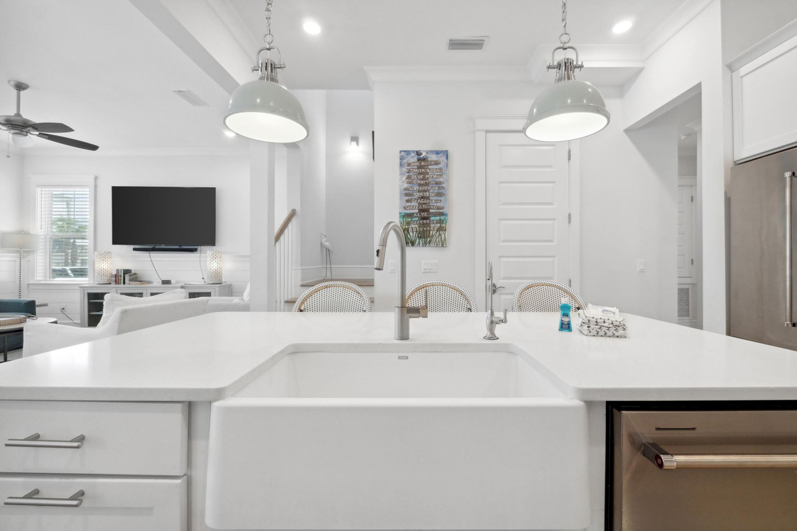 As you step into Sugar Magnolia, guests will take note of the open environment with 10-foot ceilings and coastal style throughout the home, including a first floor master suite with private access to the back patio. The dining table can seat 10 andthere are 4 extra seats at the kitchen island. In the back of the home you will find a covered deck with sectional and an expanded paver patio with outdoorteak dining table for 8, plus a Weber grill!