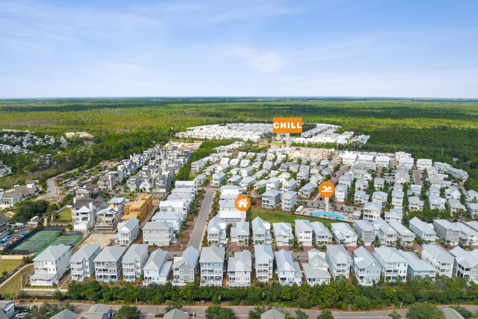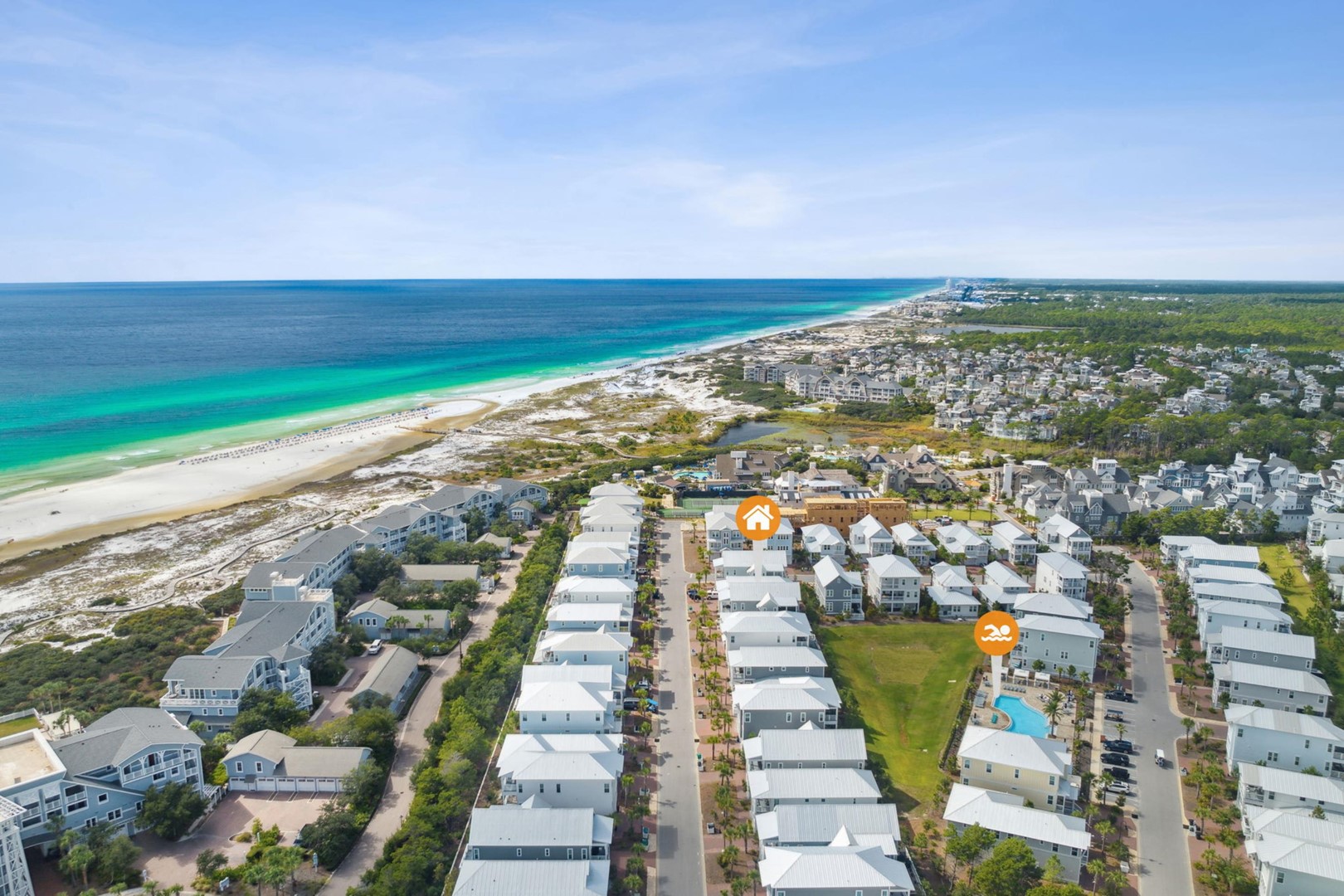 Beach Accesses for ALL Prominence homes are via South Walton public beach access points. Most Prominence guests utilize Deer Lake State Park beach access or other nearby public beach accesses. Prominence homes do not have direct beach access via Watersound Club nor do they have access to Watersound private club facilities.