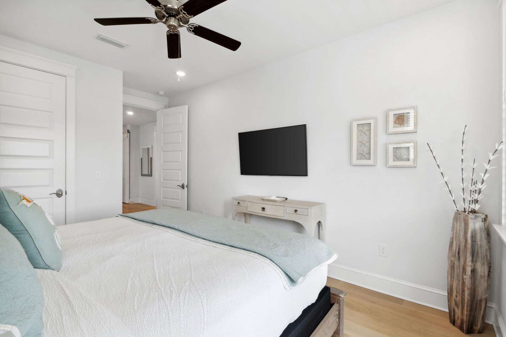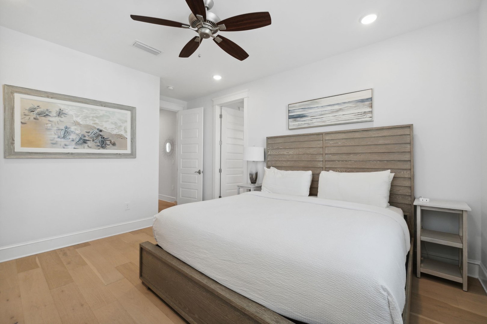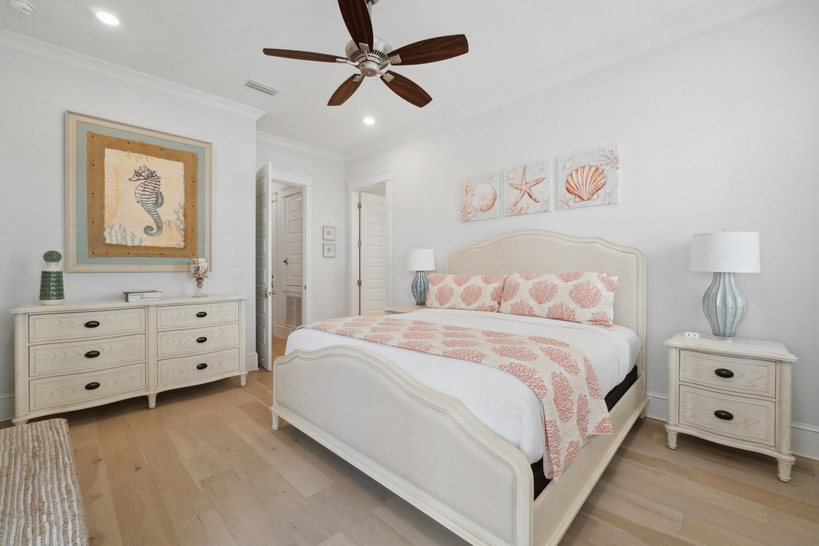You’ll enjoy all the comforts of home in this elegant comfortable family friendly home filled with coastal charm! Upon arrival, you’ll notice the over-sized driveway with ample parking, room for 6-seater golf cart (included) and bike parking.Â