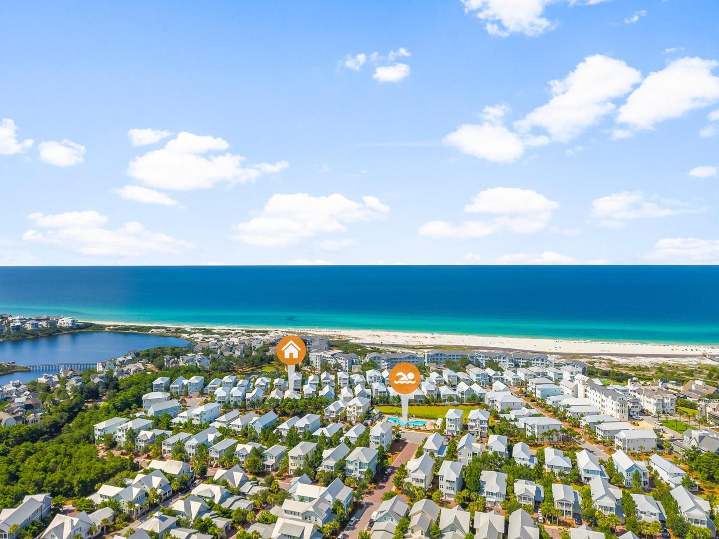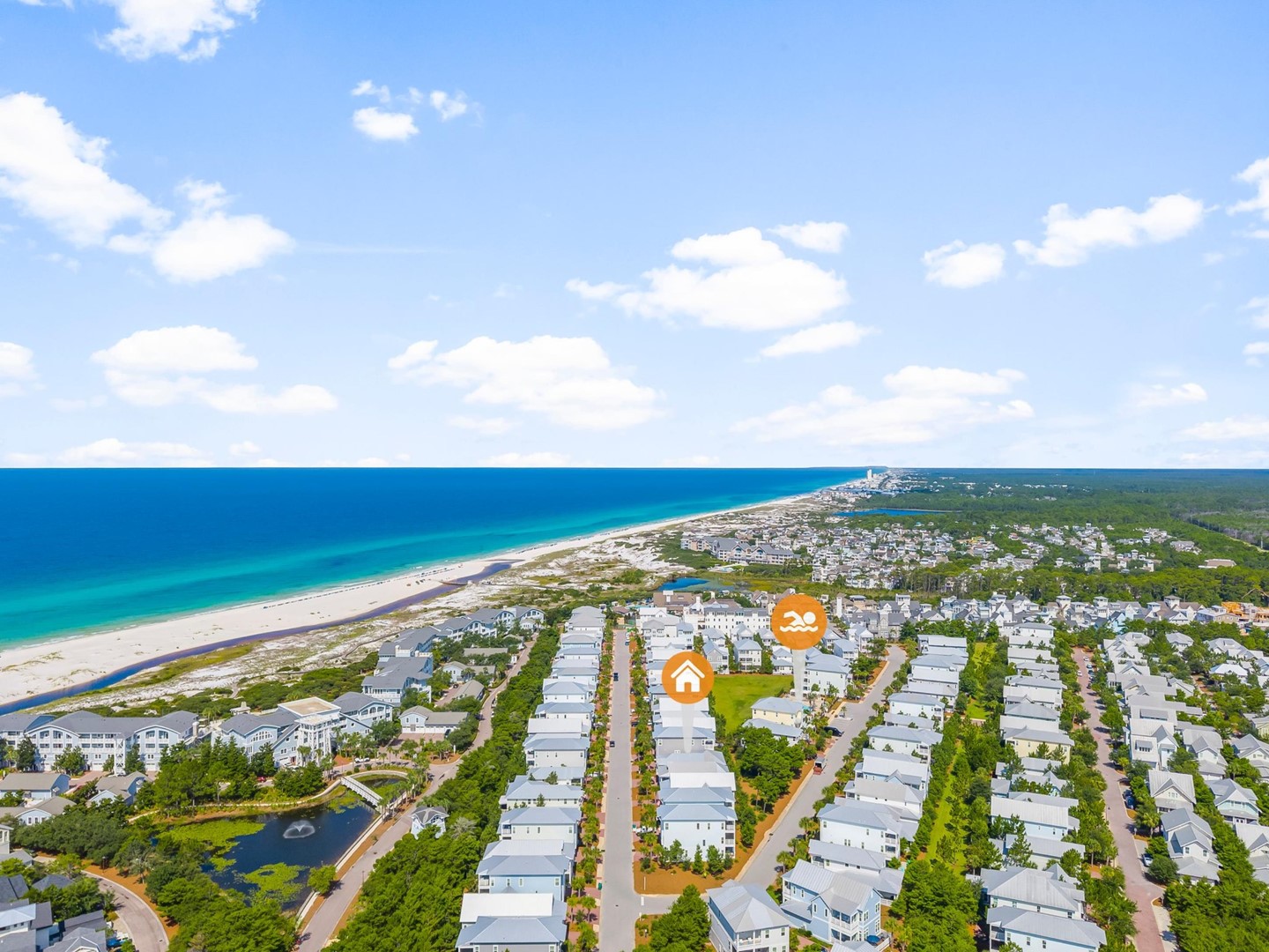 Beach Accesses for ALL Prominence homes are via South Walton public beach access points. Most Prominence guests utilize Deer Lake State Park beach access or other nearby public beach accesses. Prominence homes do not have direct beach access via Watersound Club nor do they have access to Watersound private club facilities.