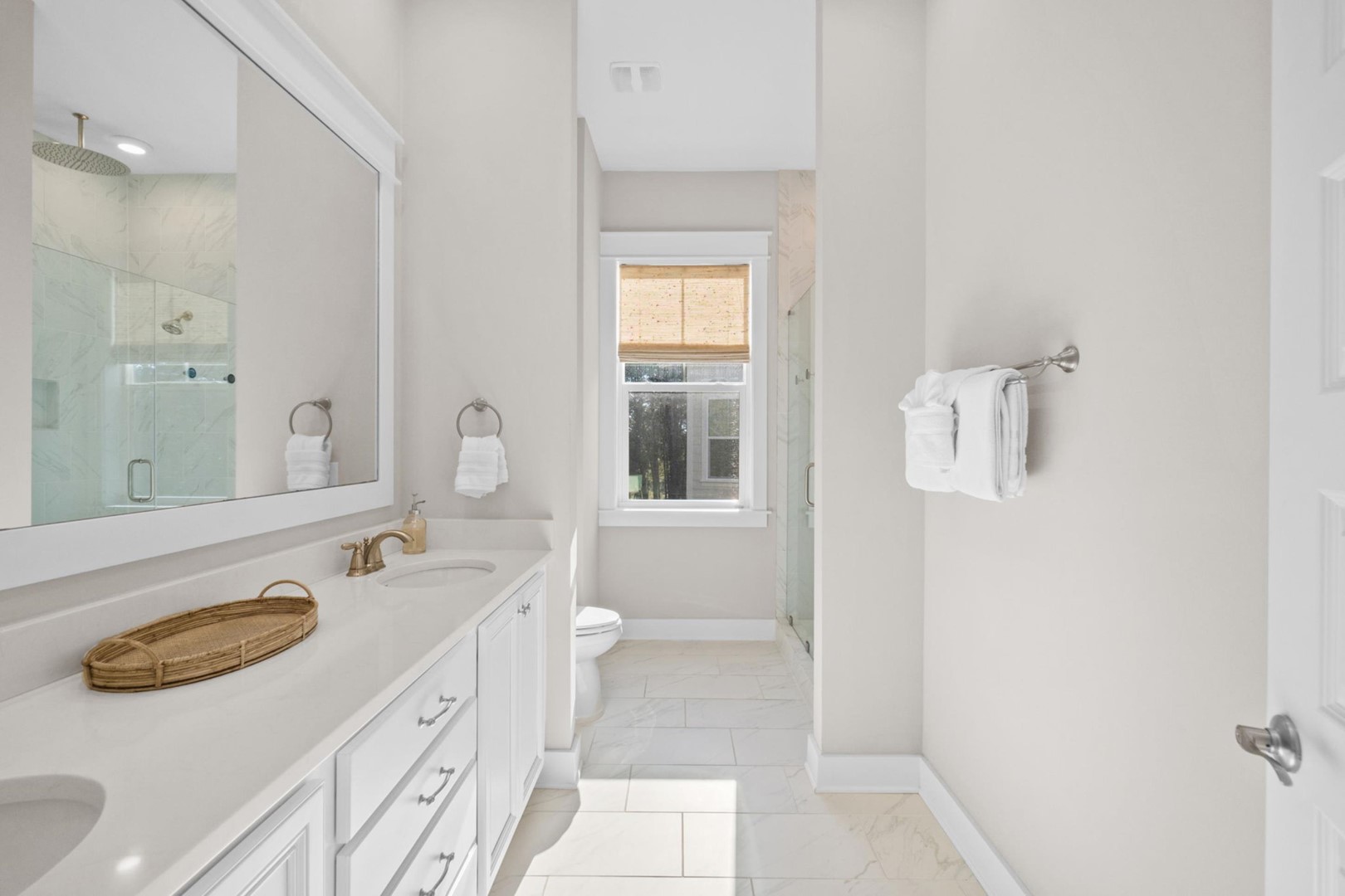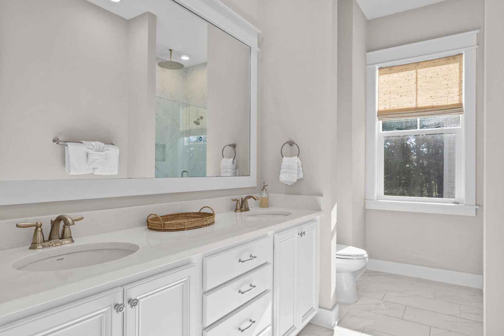 * Bedroom 1 - King Bed, 55" Smart TV, En Suite Bathroom with Dual Shower Head