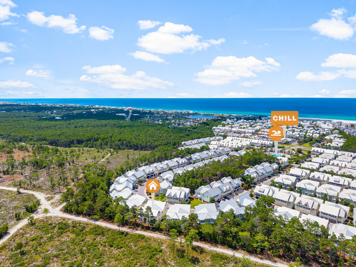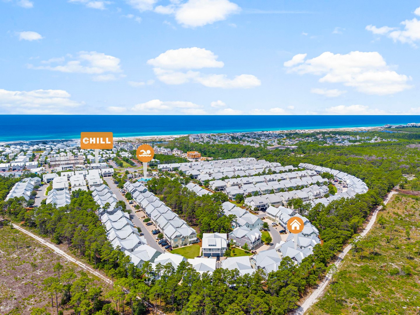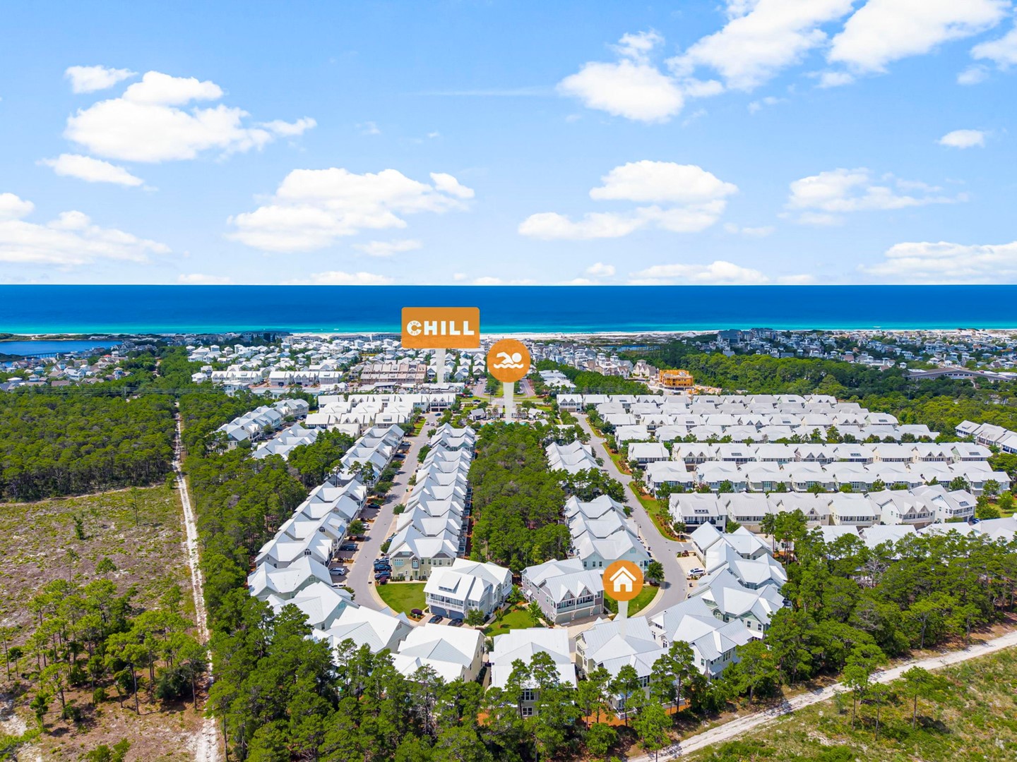 Beach Accesses for ALL Prominence homes are via South Walton public beach access points. Most Prominence guests utilize Deer Lake State Park beach access or other nearby public beach accesses. Prominence homes do not have direct beach access via Watersound Club nor do they have access to Watersound private club facilities.