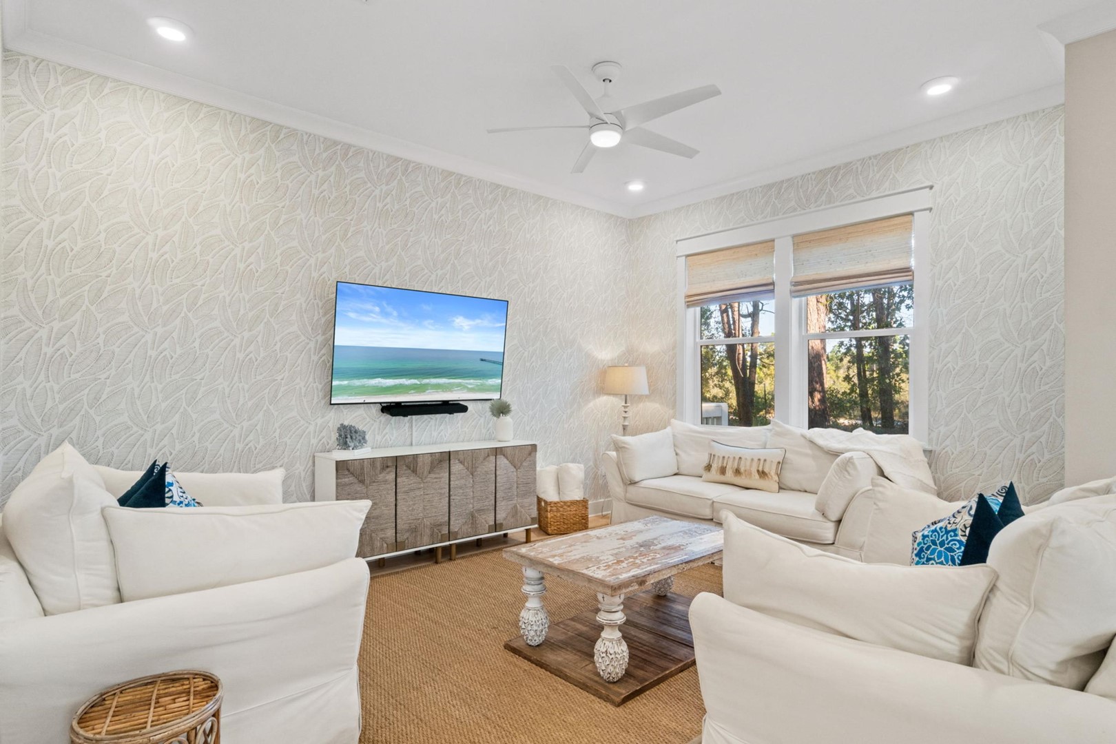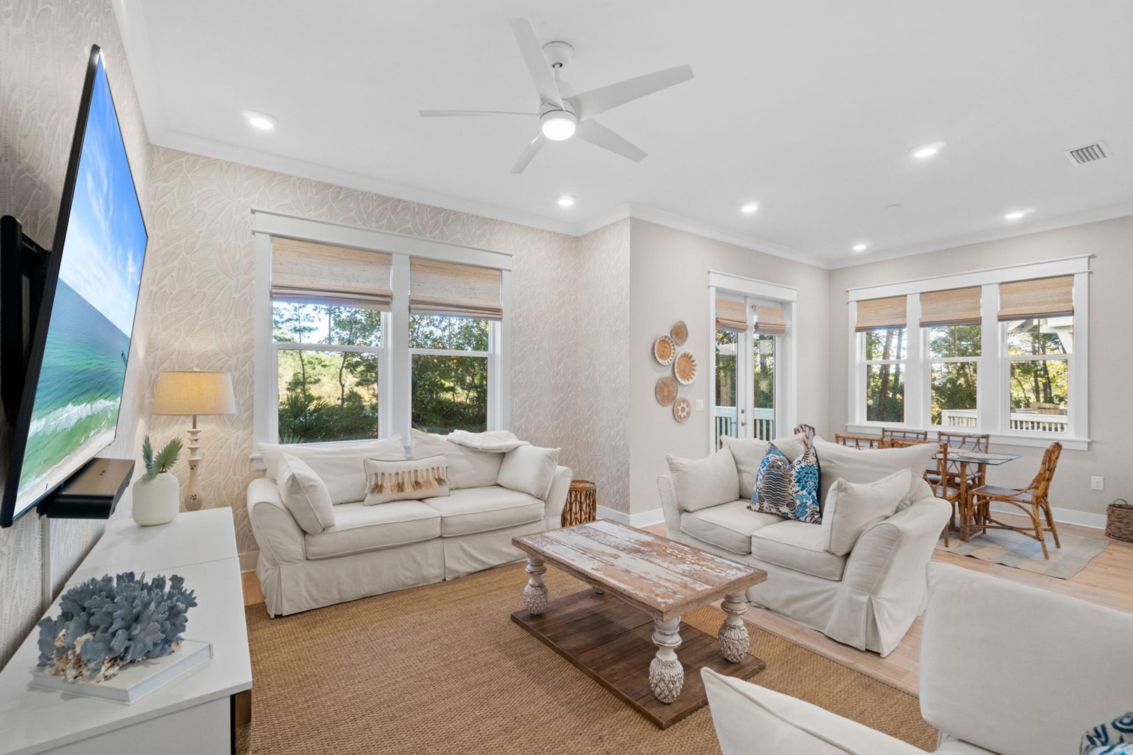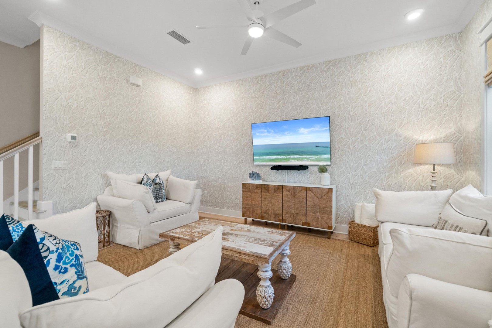 Prominence 30A rental, Swaying Palms, located in Watersound, FL by Panhandle Getaways is a 3 bedroom, 2.5 bathroom vacation home complete with all of the conveniences of home. 2025 Brand New 6 Seater Golf Cart included with your stay!
