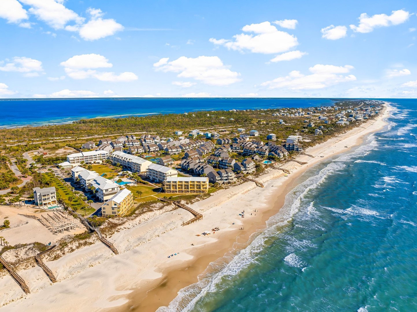 SeaCliffs is a gated beachfront community on the desirable north end of Cape San Blas, offering a peaceful, family-friendly escape along Florida’s Forgotten Coast. Known for its stunning Gulf views and uncrowded white-sand beaches, SeaCliffs features convenient beach access via private boardwalks, a large community pool, and a playground for guests of all ages. Located near St. Joseph Peninsula State Park, the community blends natural beauty with convenience, placing visitors just minutes from outdoor recreation and local dining.