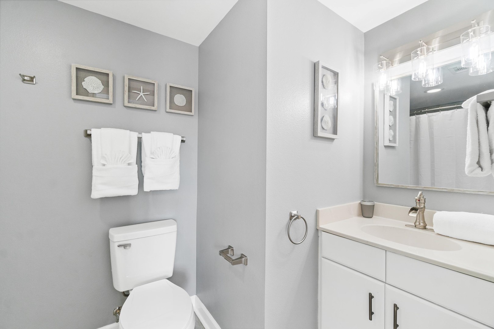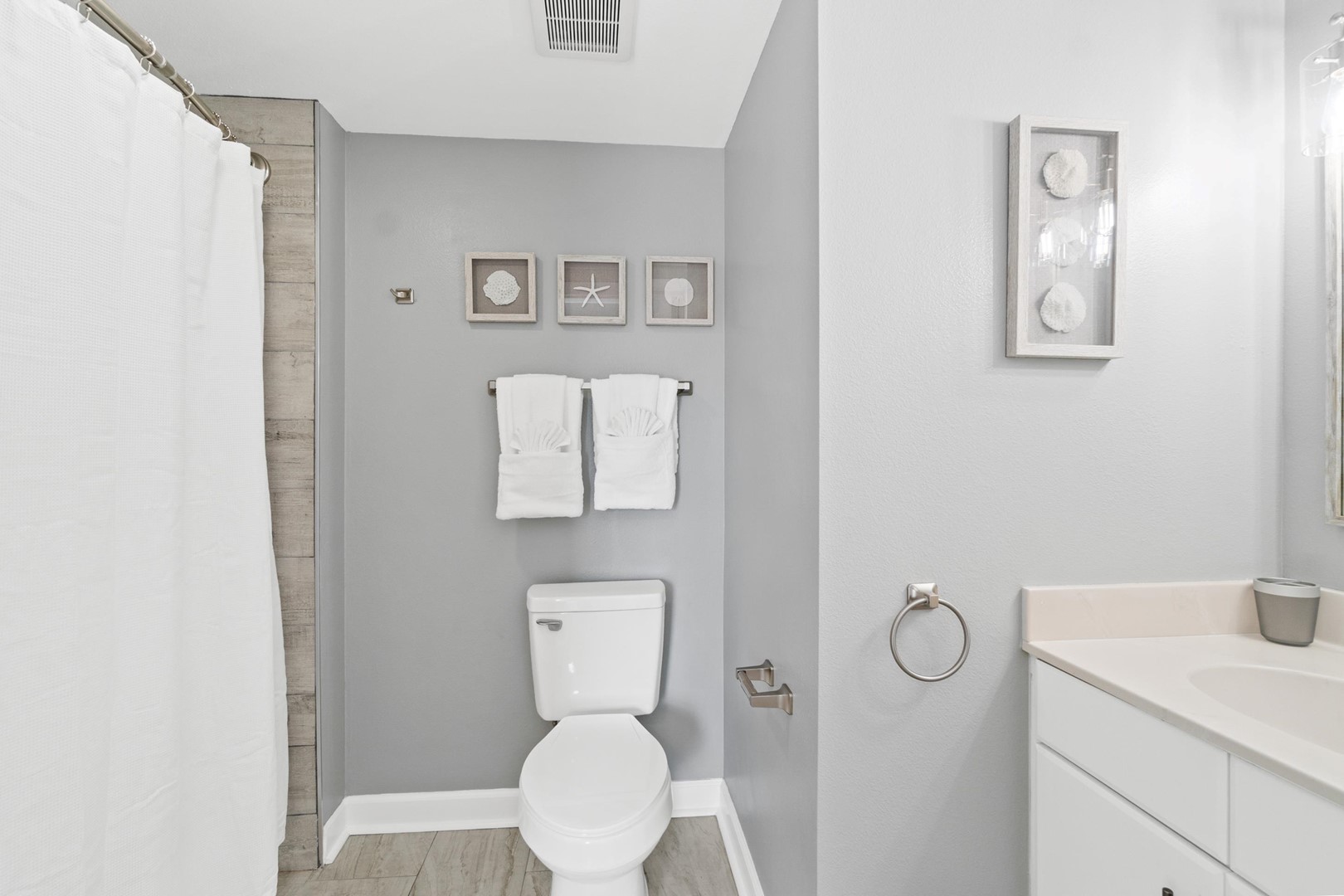 Panhandle Getaways furnishes a few essential items for guests to utilize until they can get to the grocery store. Initial Supplies include: Dishwasher soap, small washing machine powder, each bathroom has amenities (like hotel but NOT restocked) shampoo, conditioner, soap bar. One roll of toilet paper in each bathroom & one paper towel roll in the kitchen. All bed linens & towels are provided. We encourage guests to bring beach towels for use at the pool and beach.
