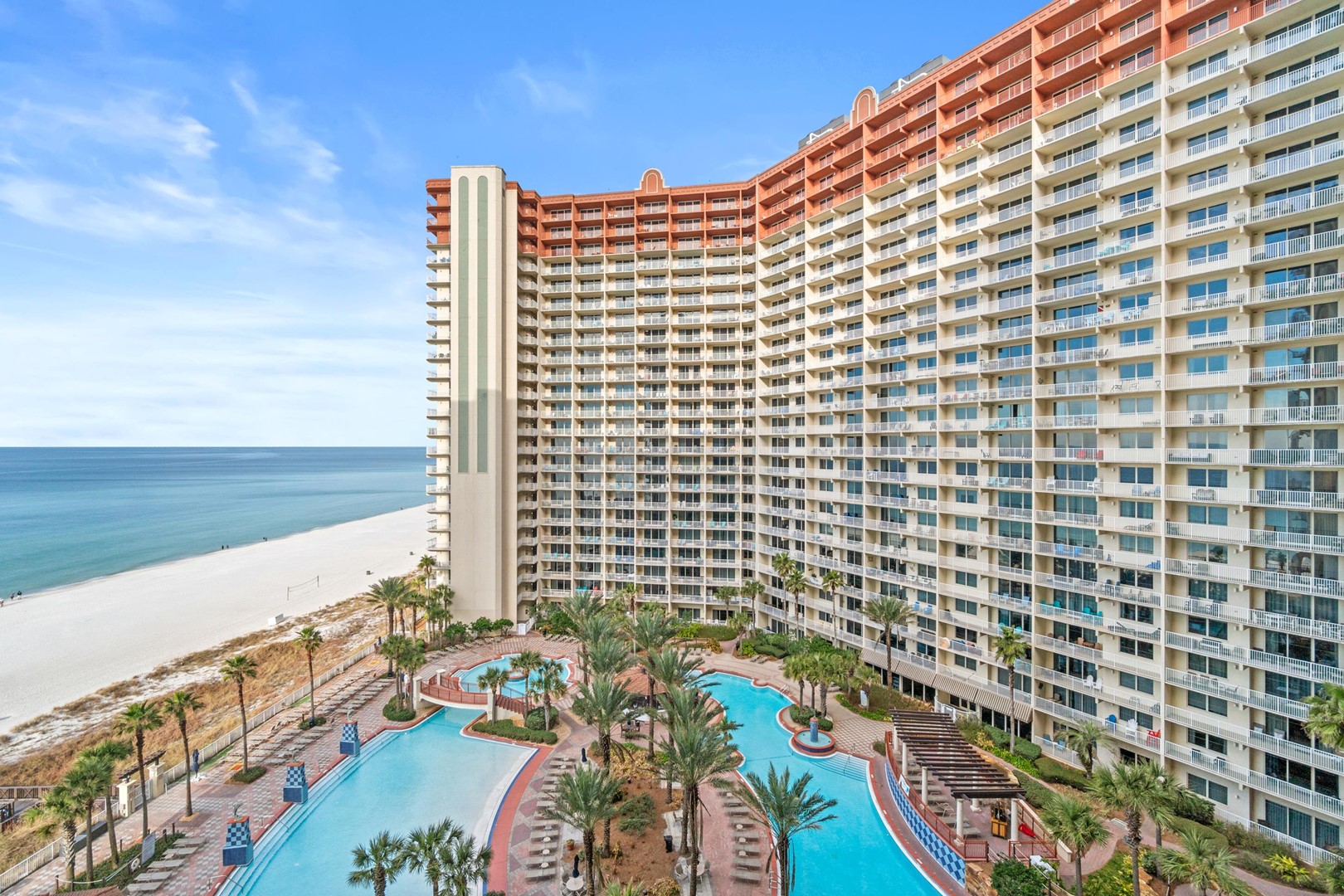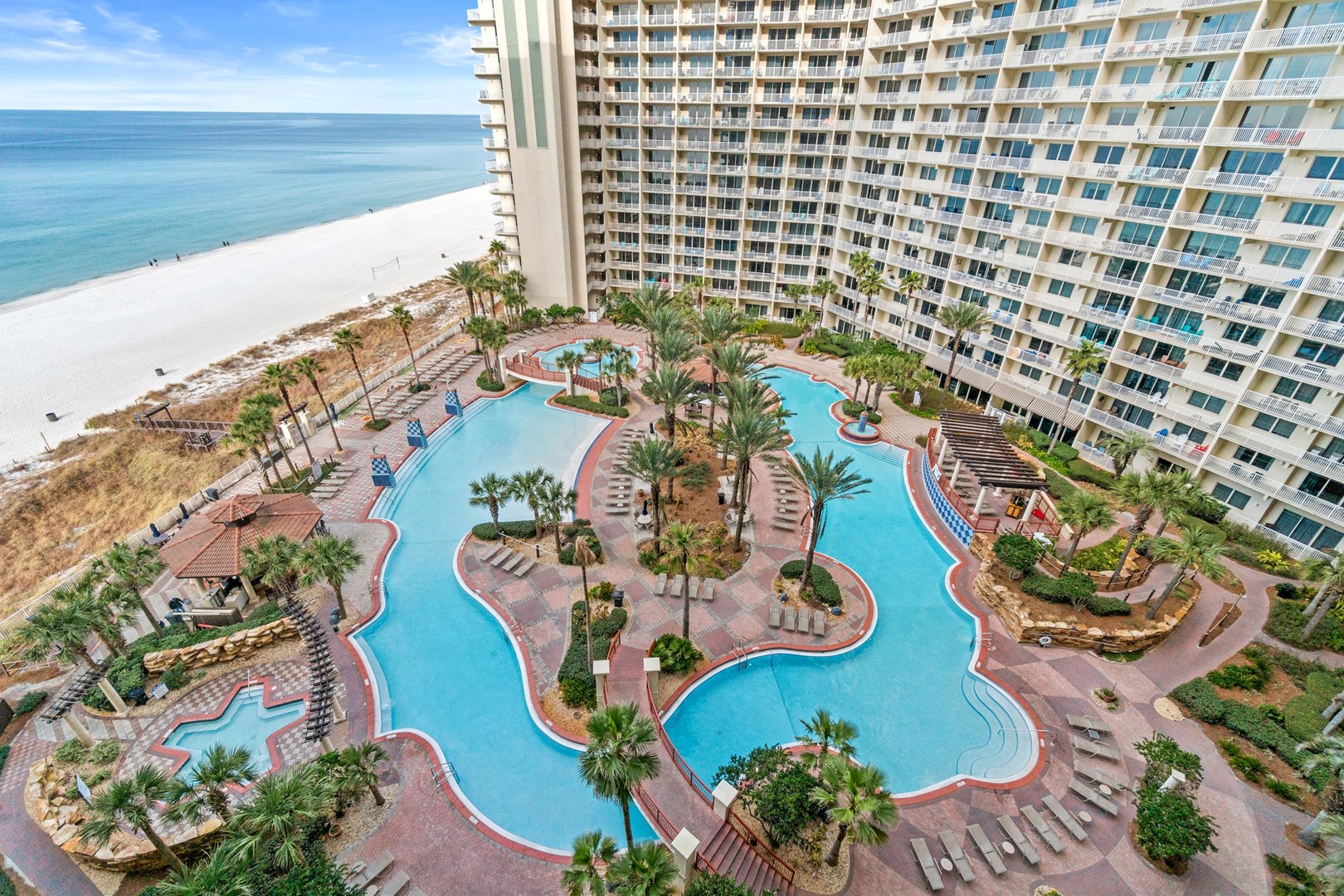 Beautiful tropical gulf side pools and hot tubs with beach view
