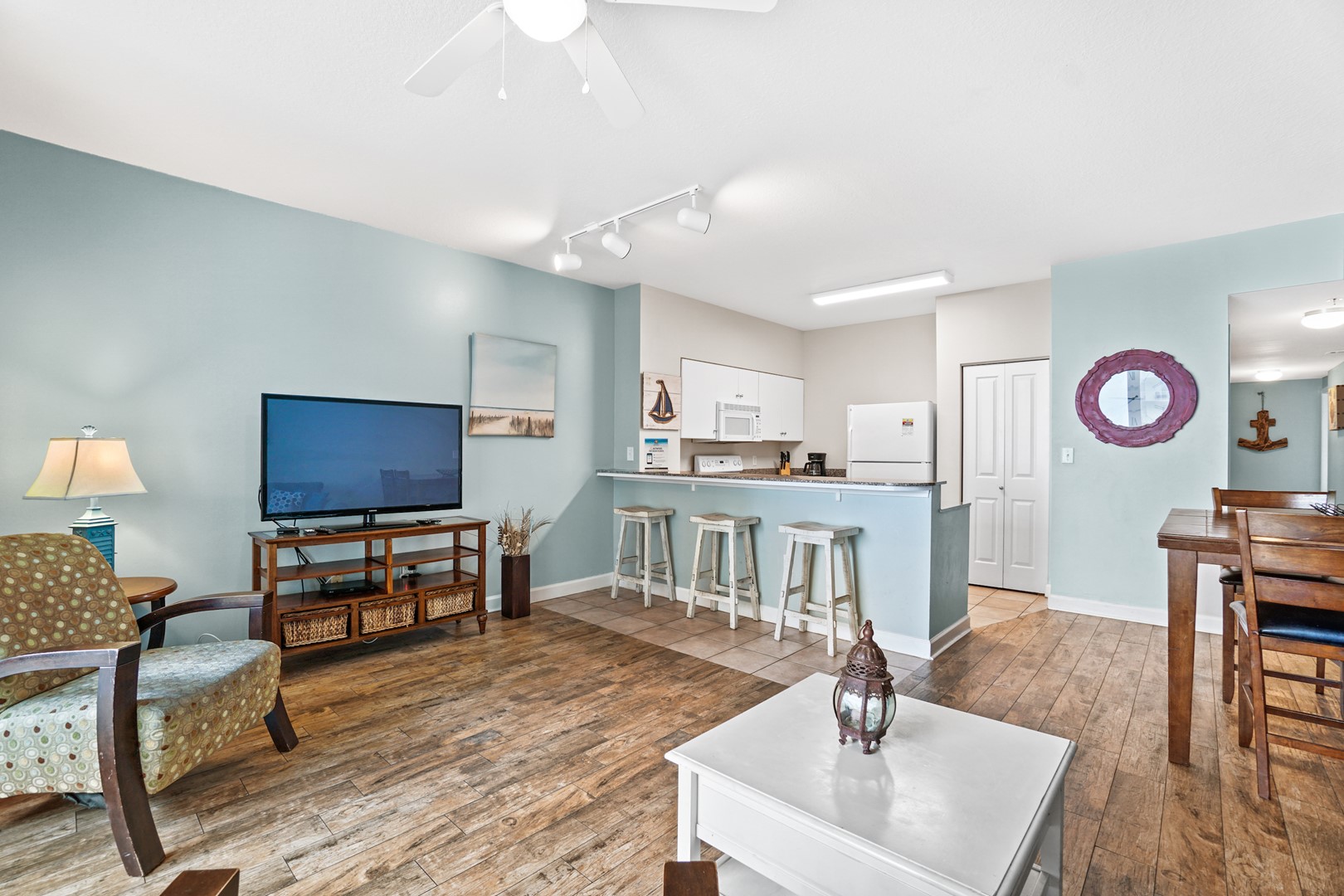 * Living Area - Gulf View, TV, Balcony Access