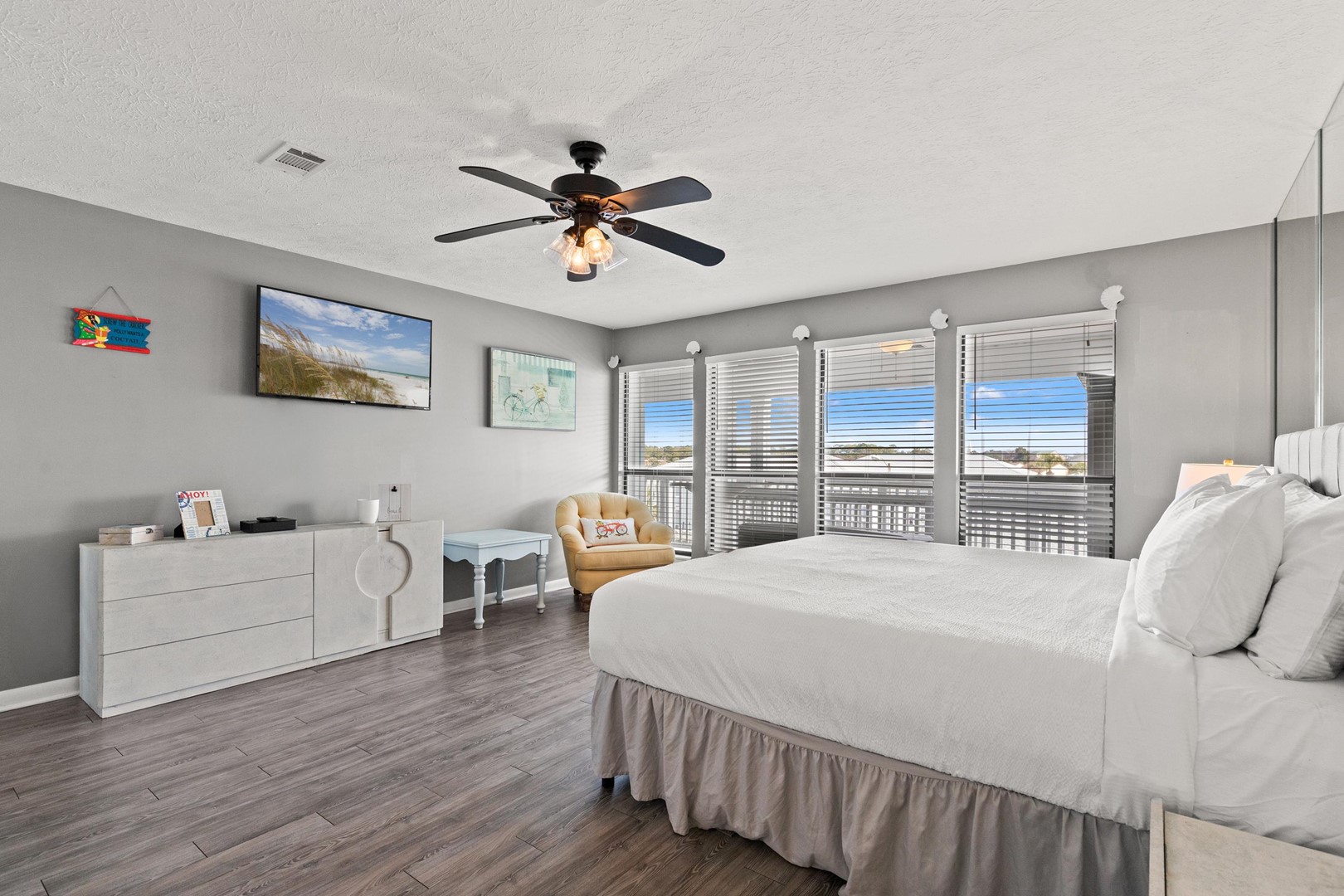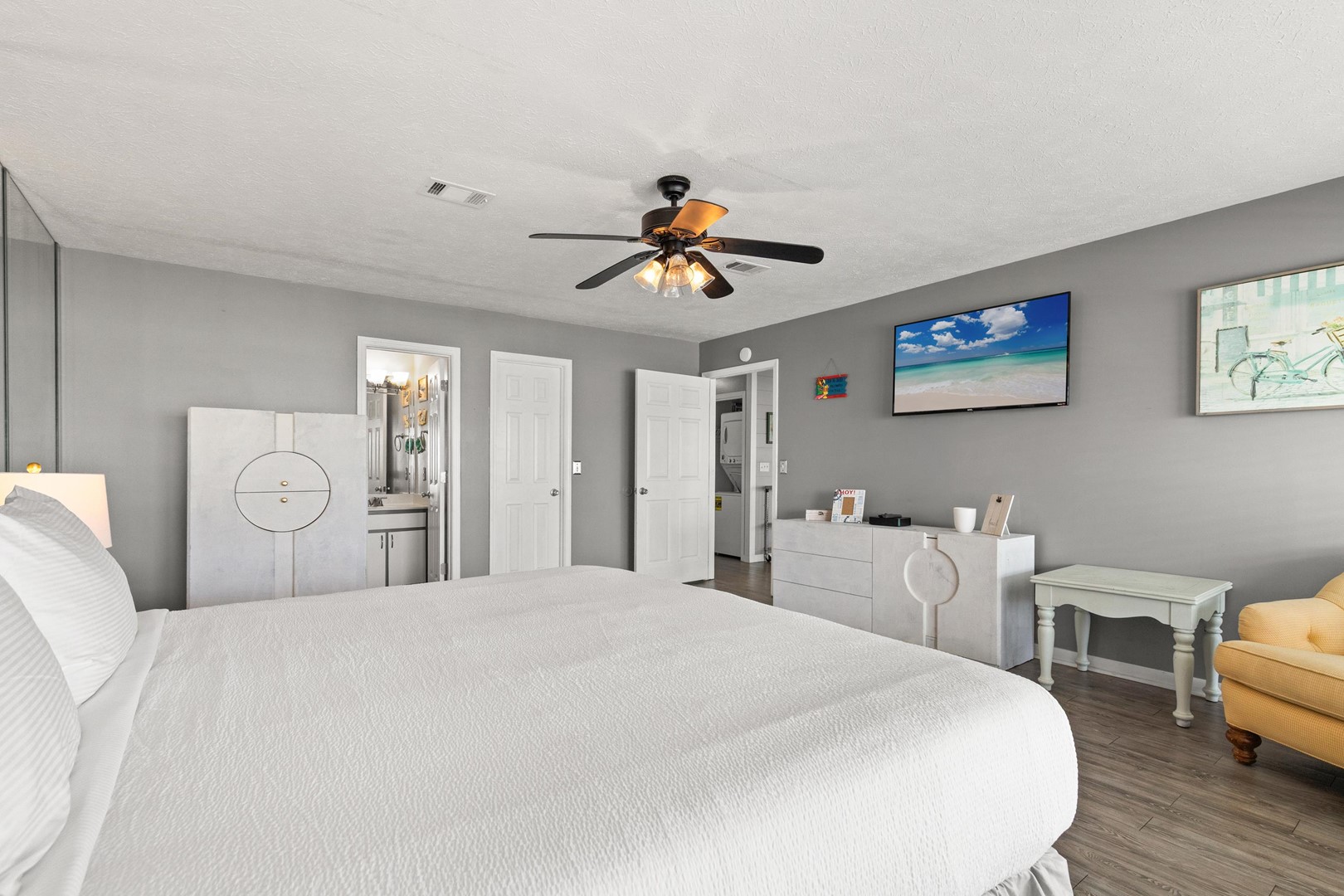 • Bedroom 1: King bed, 55" Smart TV, balcony access, en suite bathroom