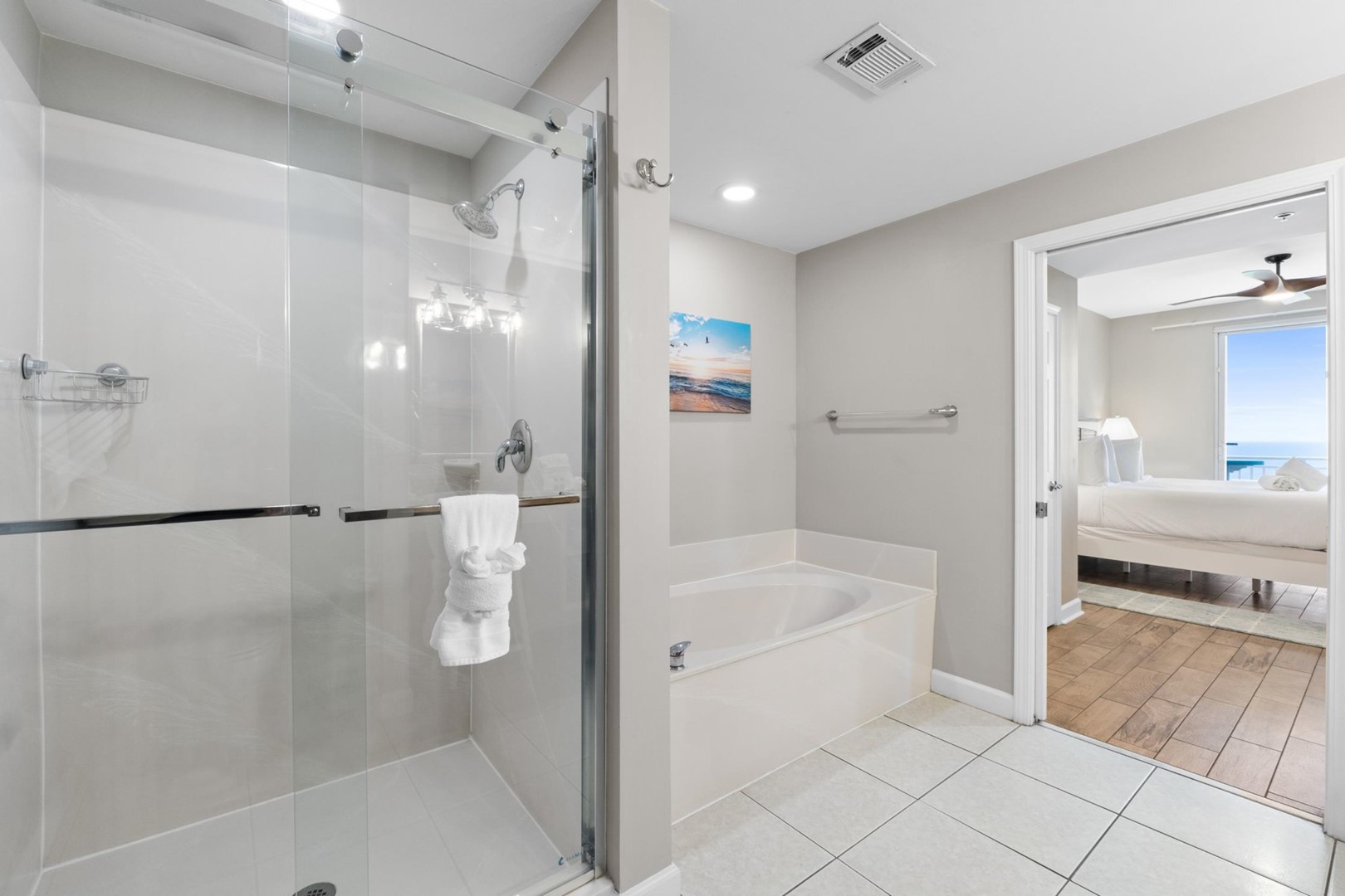 * Bedroom 1 - King Bed, Gulf View, 50" TV, Balcony Access, En Suite Bathroom
