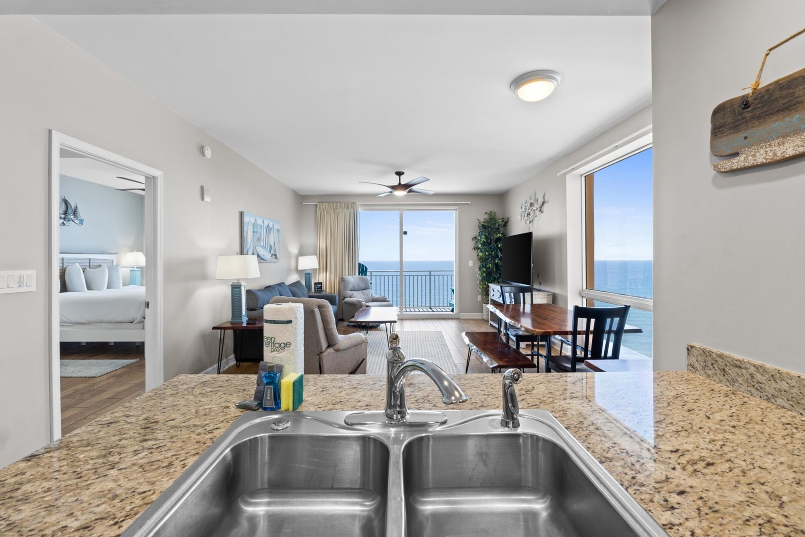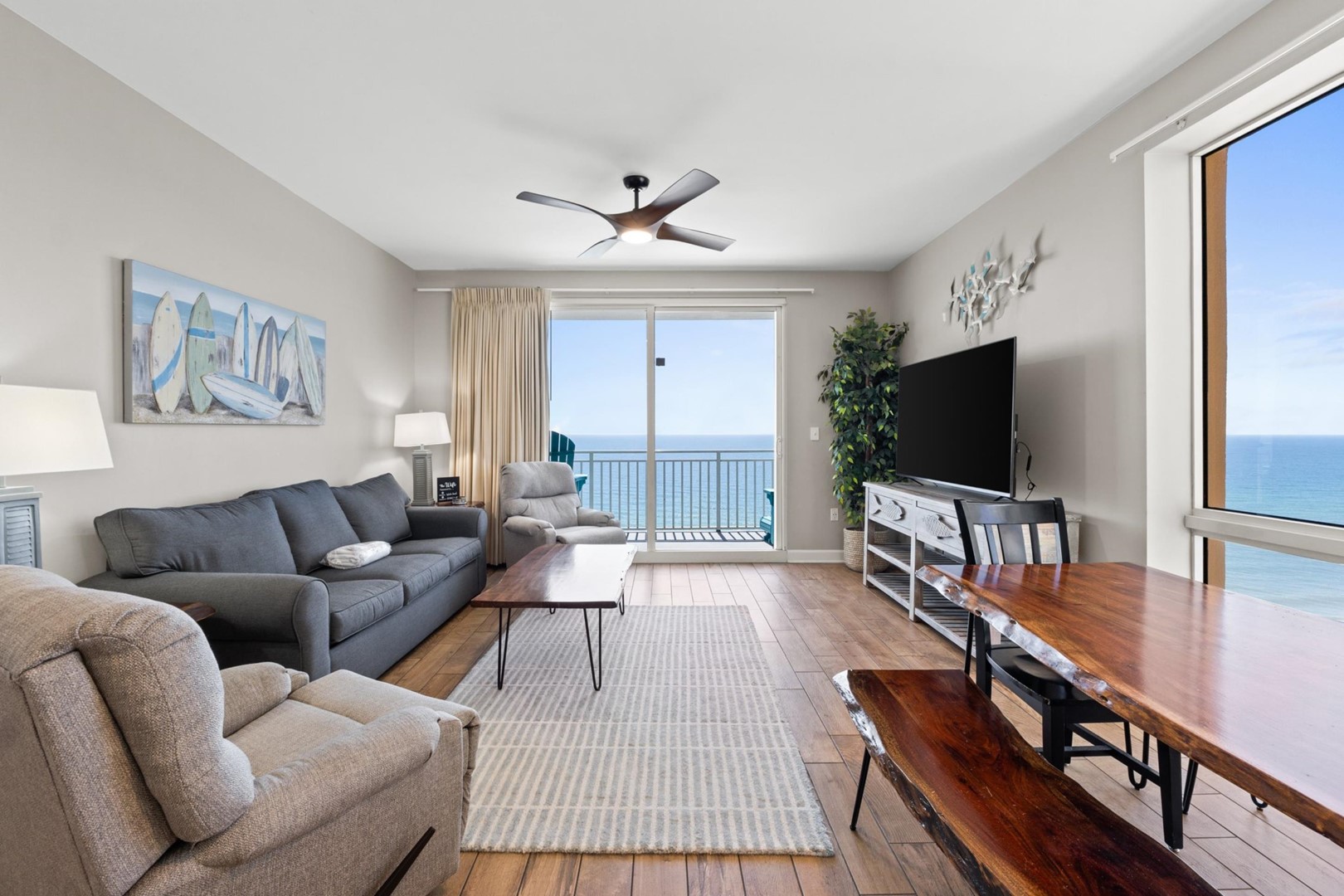* Living Area - Gulf View, 70" TV, Balcony Access